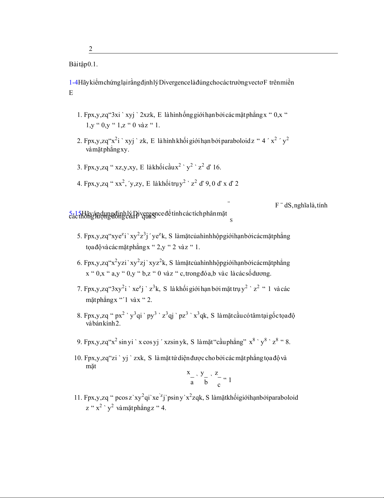 1-4HãykiểmchứnglạirằngđịnhlýDivergencelàđúngchocáctrườngvectơF trênmiền E
