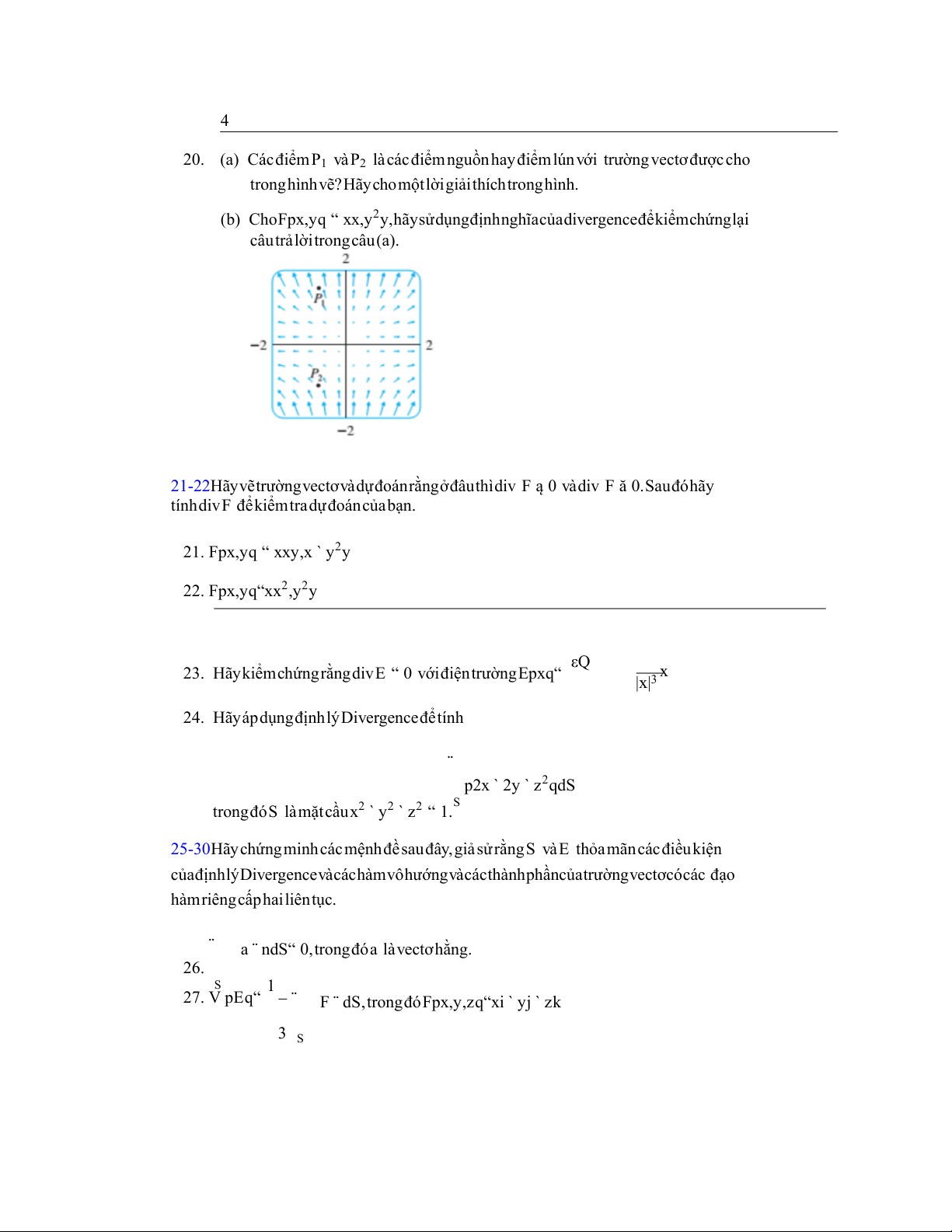20. (a) CácđiểmP1 vàP2 làcácđiểmnguồnhayđiểmlúnvới trườngvectơđượccho