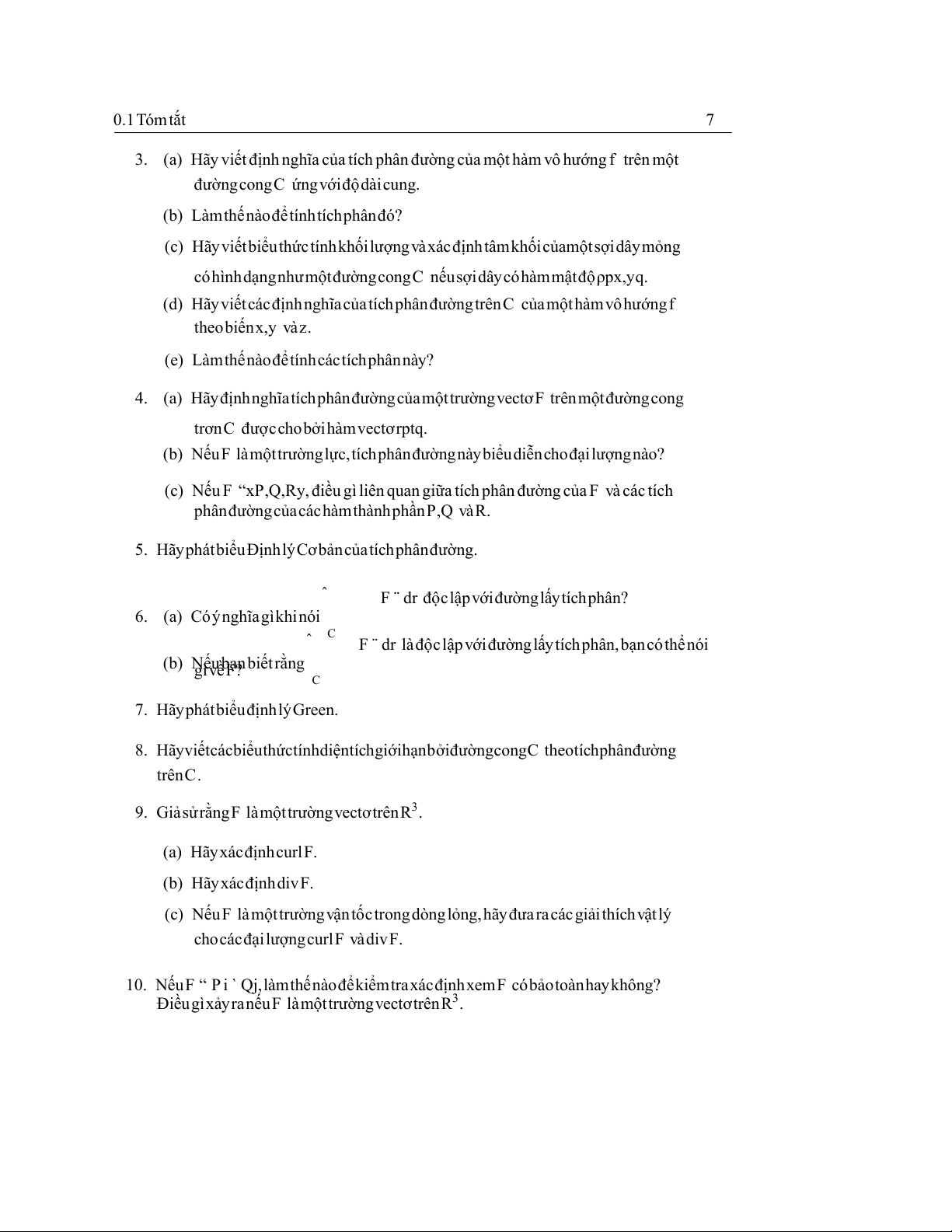 2. (a) Thếnàolàtrườngvectơbảotoàn? (b) Hàmthếnănglàgì? 0.1Tómtắt 7