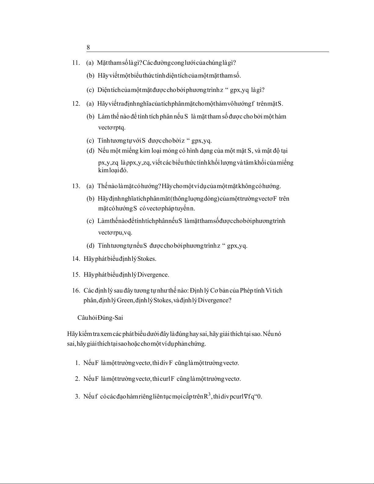 9. GiảsửrằngF làmộttrườngvectơtrênR3. (a) HãyxácđịnhcurlF. (b) HãyxácđịnhdivF.