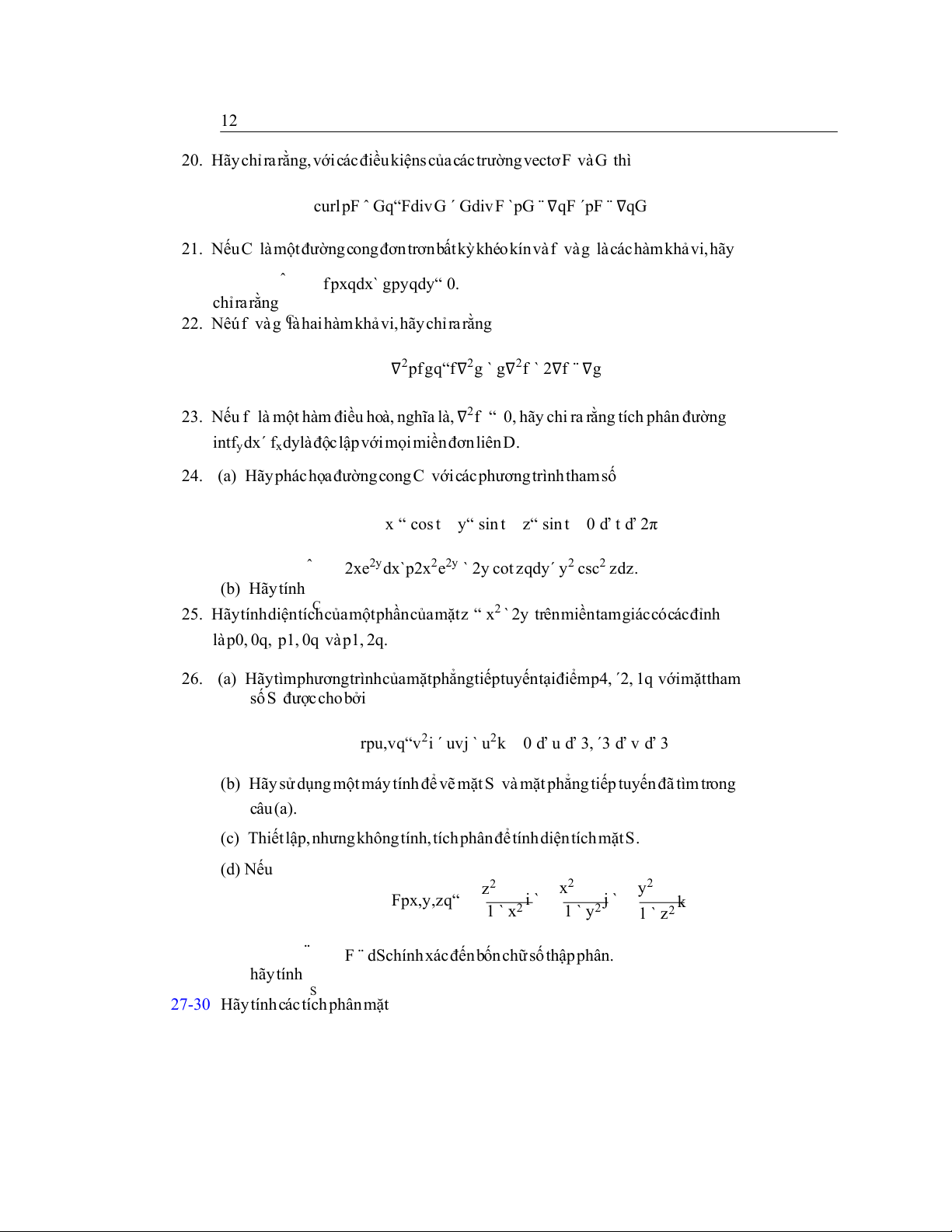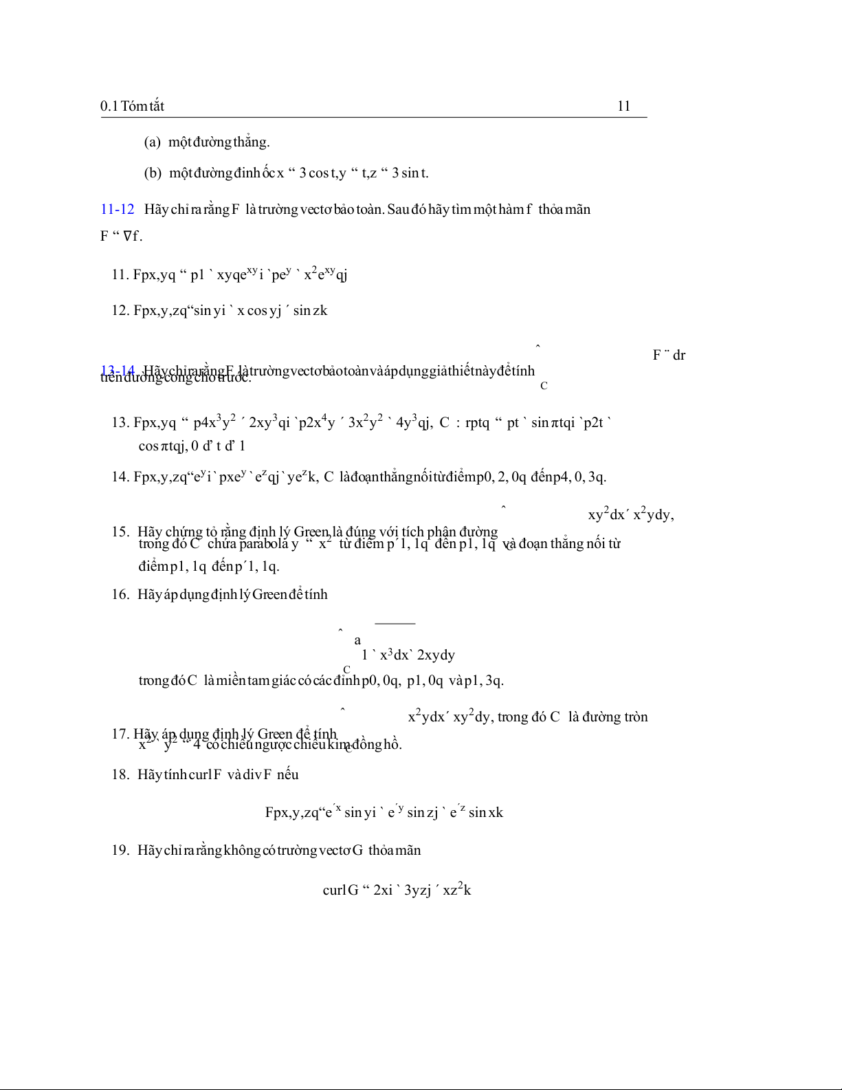 19. HãychỉrarằngkhôngcótrườngvectơG thỏamãn curlG “ 2xi ` 3yzj ´ xz2k 12