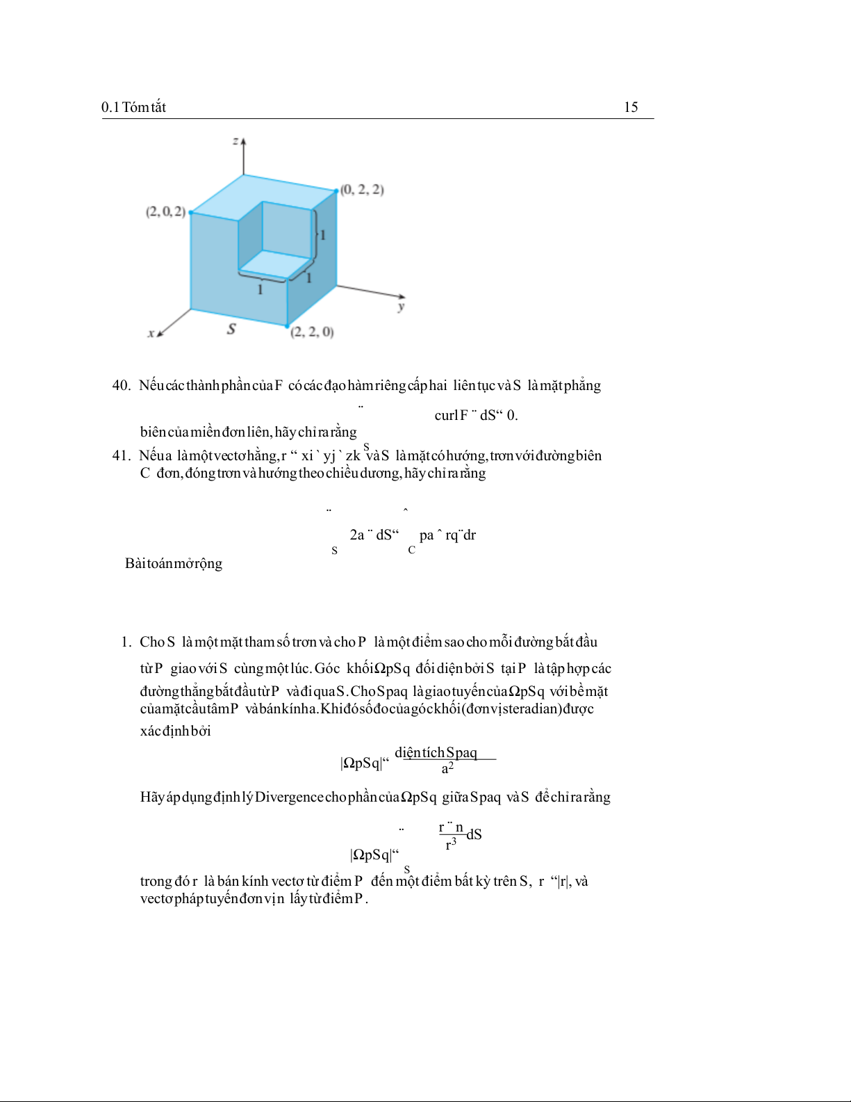 F ¨ dS,trongđóFpx,y,zq“xi ` yj ` zk 3 S 0.1Tómtắt 5 ¨ curlF ¨ dS“ 0 28. S ¨ ˚ ∇2f dV 29. DnfdS“ S E ¨ ˚ 30. pf∇gq¨ndS“ pf∇2g ` ∇f ¨ ∇gqdV S E ¨ ˚ 31. pf∇g ´ g∇fq¨ndS“ pf∇2g ´ g∇2fqdV S E