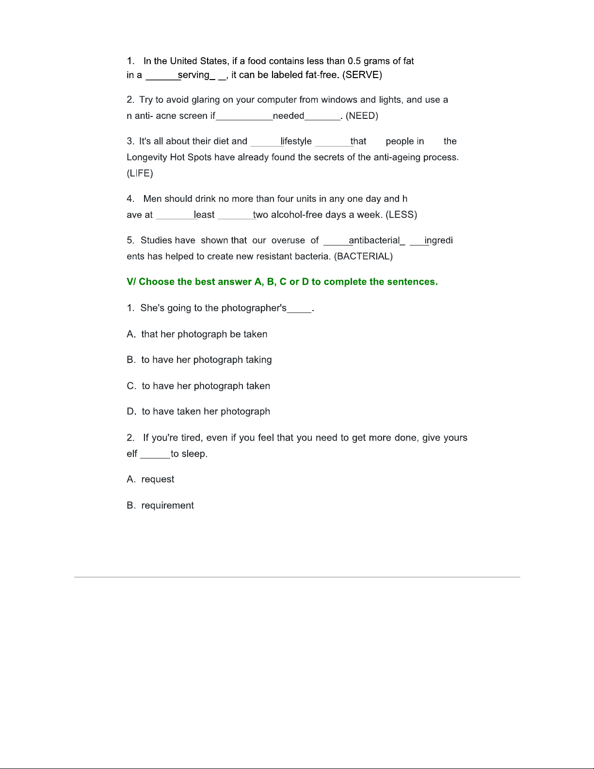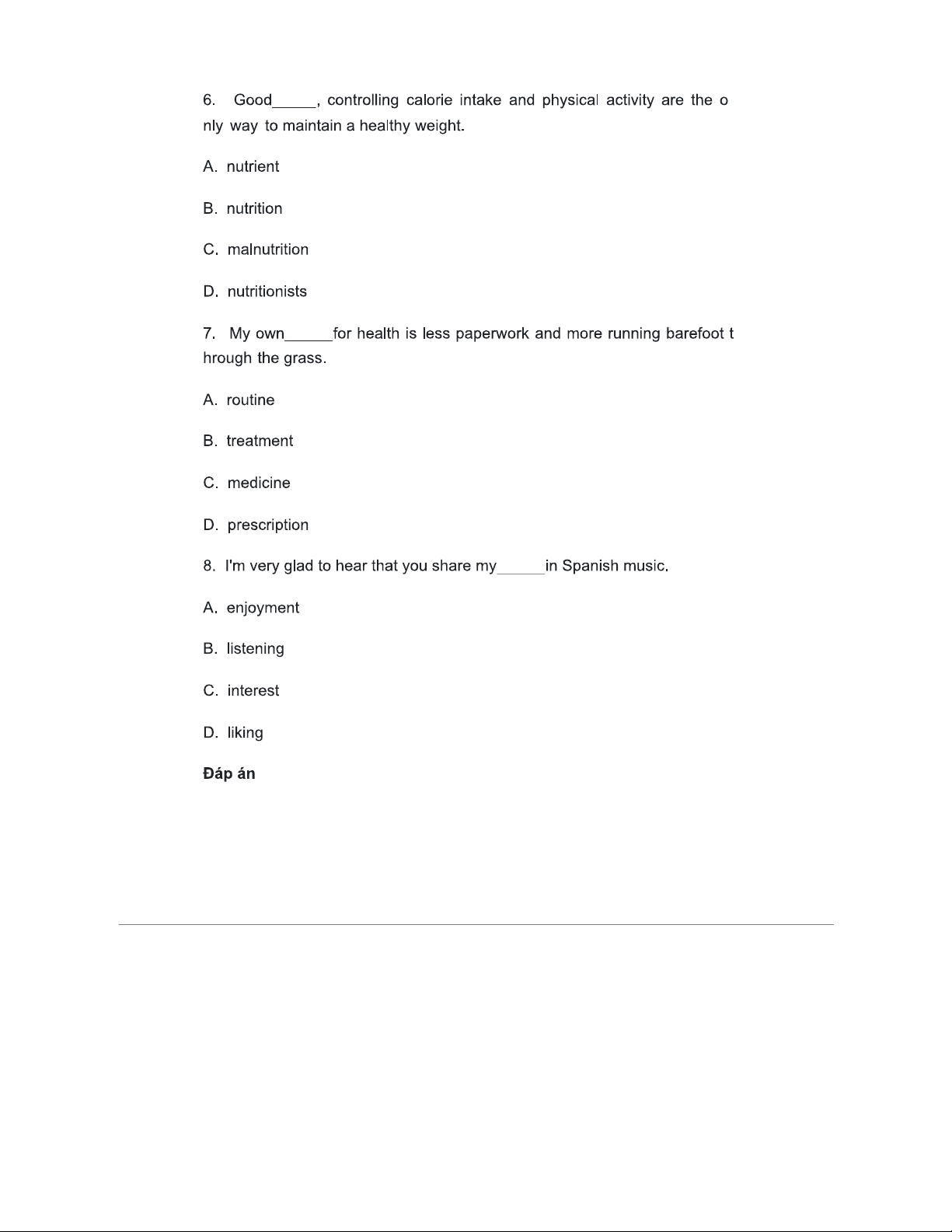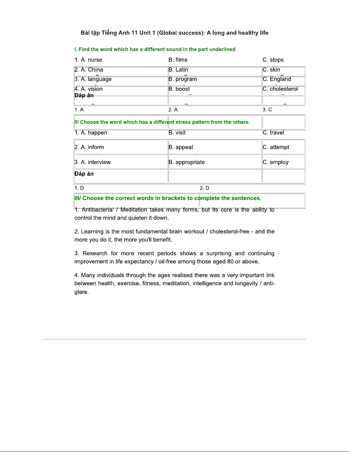Bài Tập Tiếng Anh 11 - Unit 1: Cuộc Sống Lành Mạnh