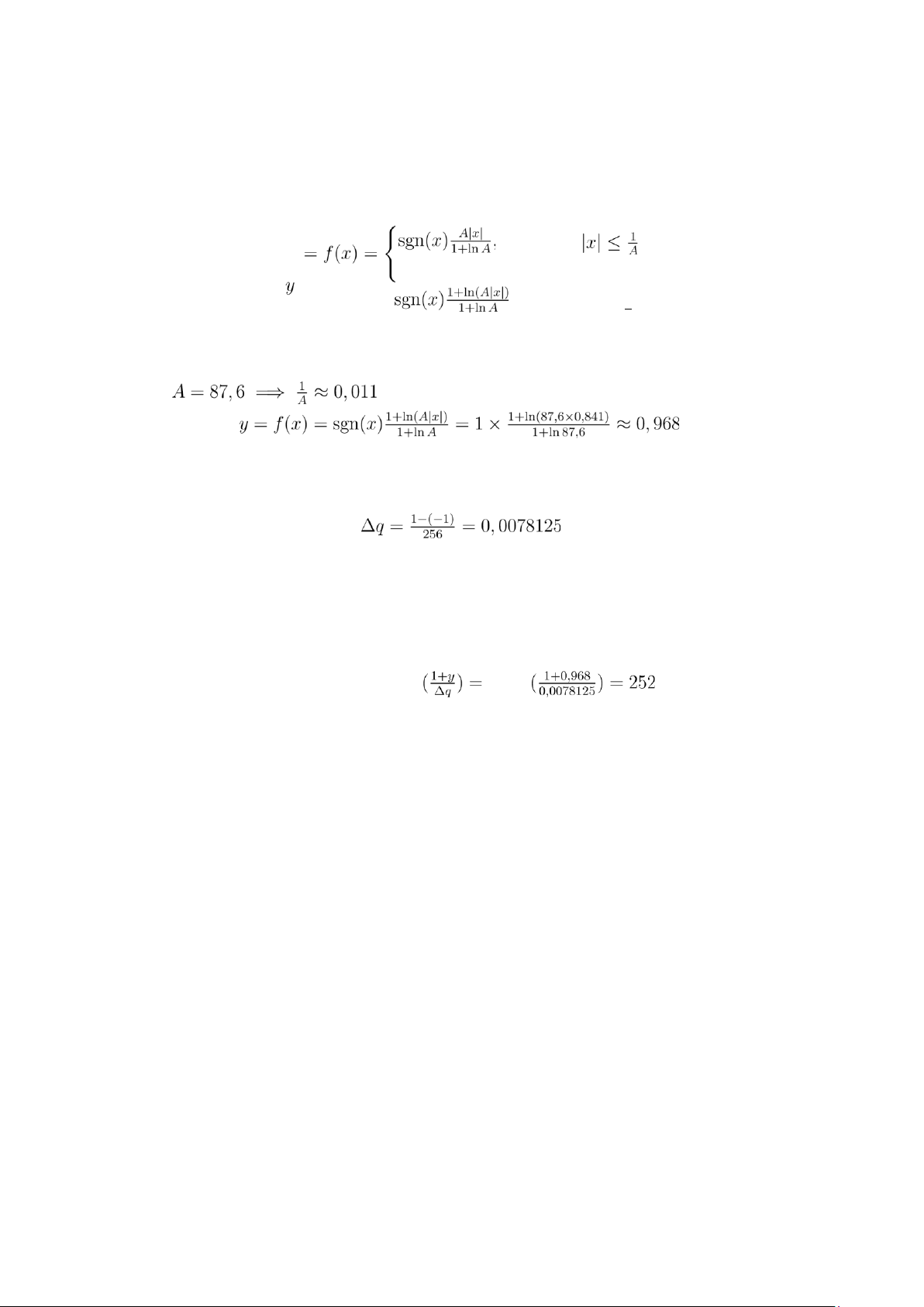 Bài 6: Phương pháp lượng tử hóa phí tuyến theo luật A(A = 87,6) với hàm y = f(x) được xây dựng theo nguyên