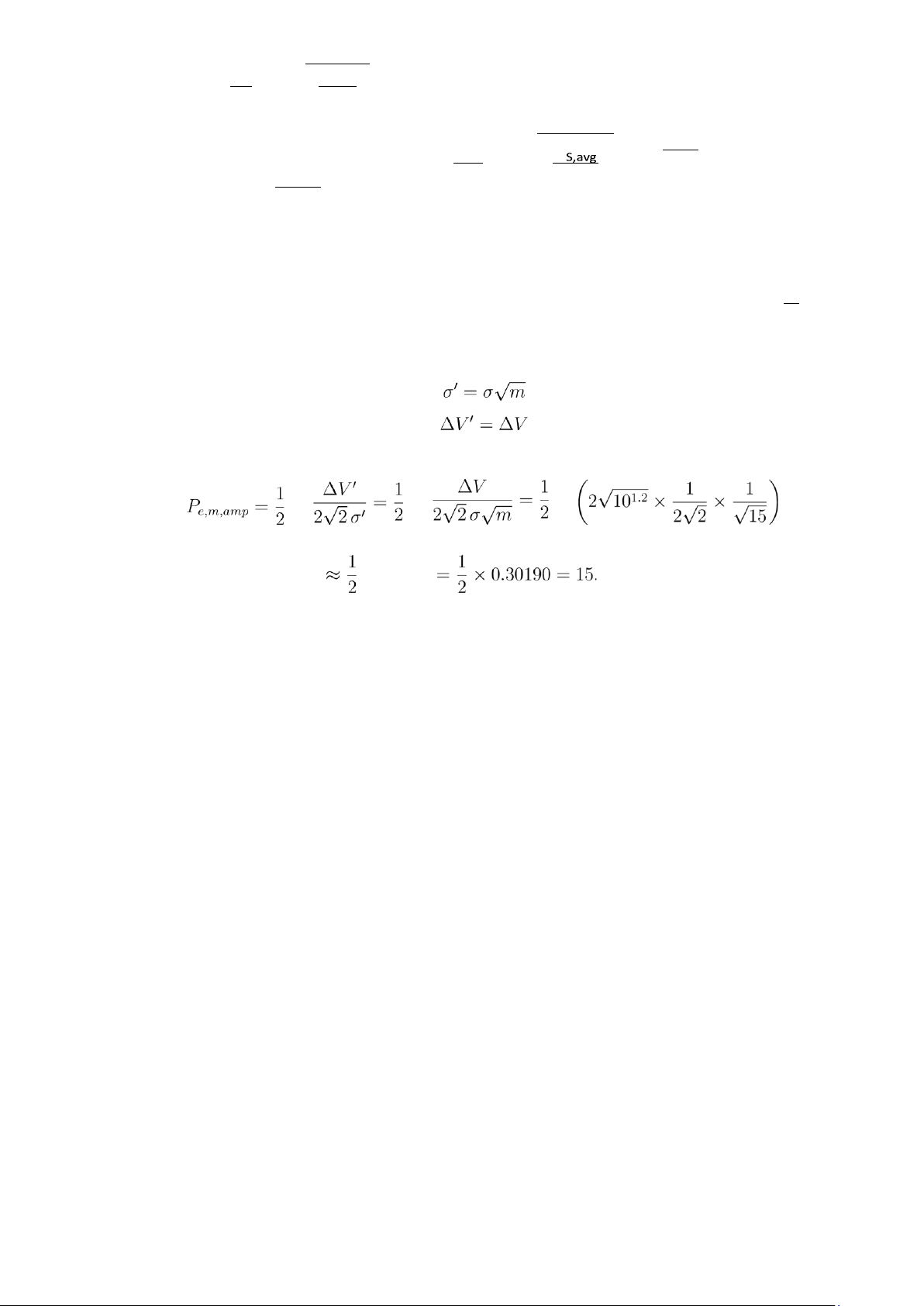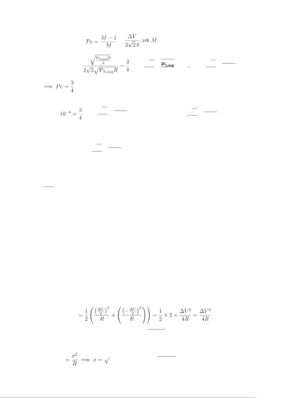 Công suất nhiễu trung bình là: PN,avg PN,avgR(2) r = ⇒ ∆ V Từ (1) và (2) P σ =2 P N,avgS,avg . Lại có: s √ P ∆ V S,avg P =10 1 .2 = ⇒ =2 =2 10 1 .2 SNR = PN,avg σ PN,avg