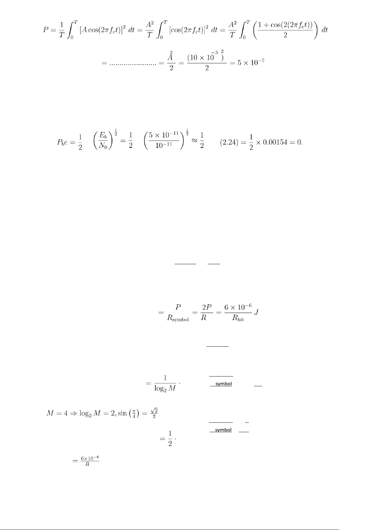 Bài 2: Xét hệ thống sử dụng điều chế QPSK có các thông số như sau: công suất tín hiệu (trung bình) là P = 3 ×
