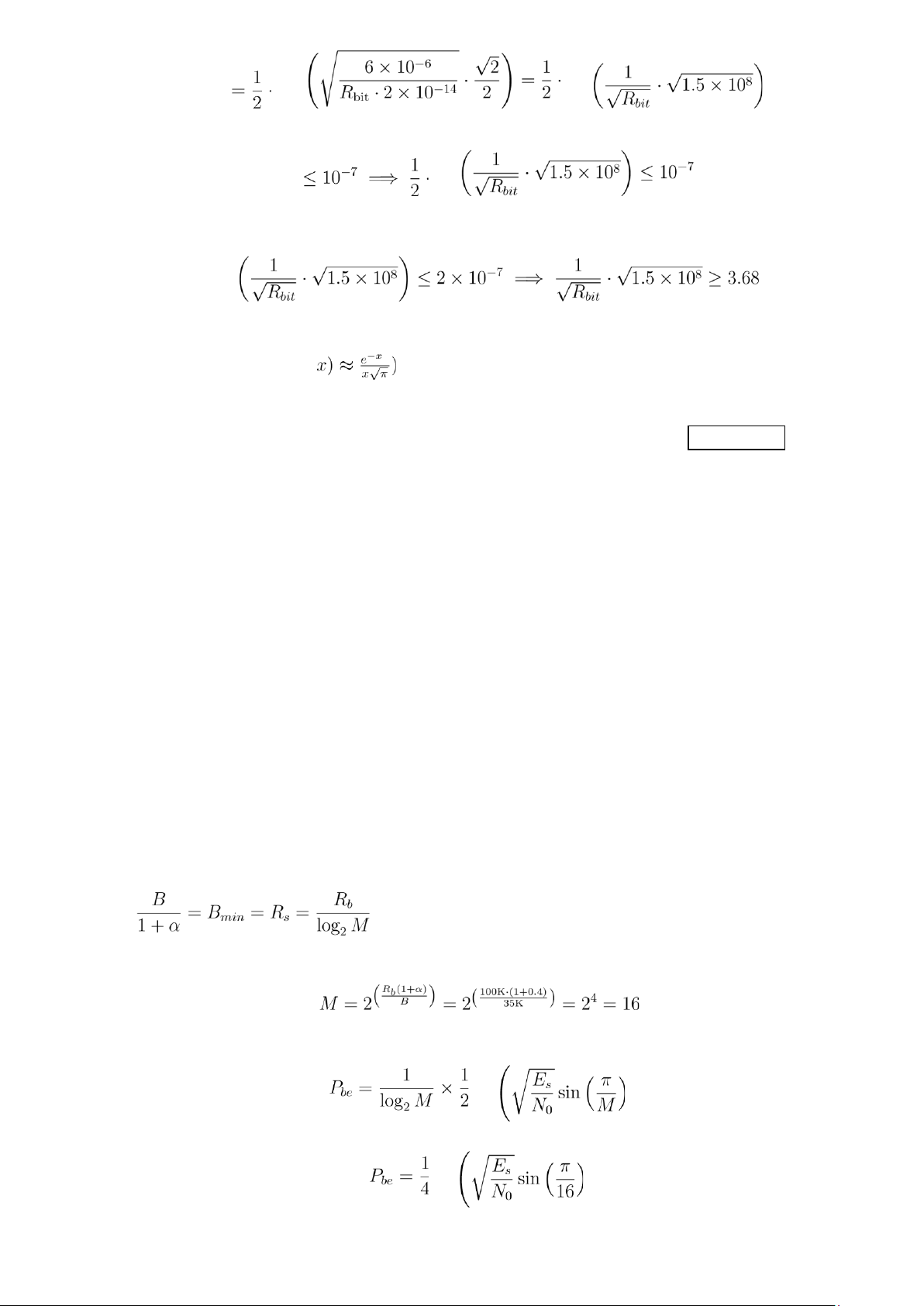 = 0.4, do đó mức điều chế là: 2. Xác suất lỗi bit là: ! erfc Thay M = 16 ta có: ! erfc Điều kiện bài ra: erfc erfc 2