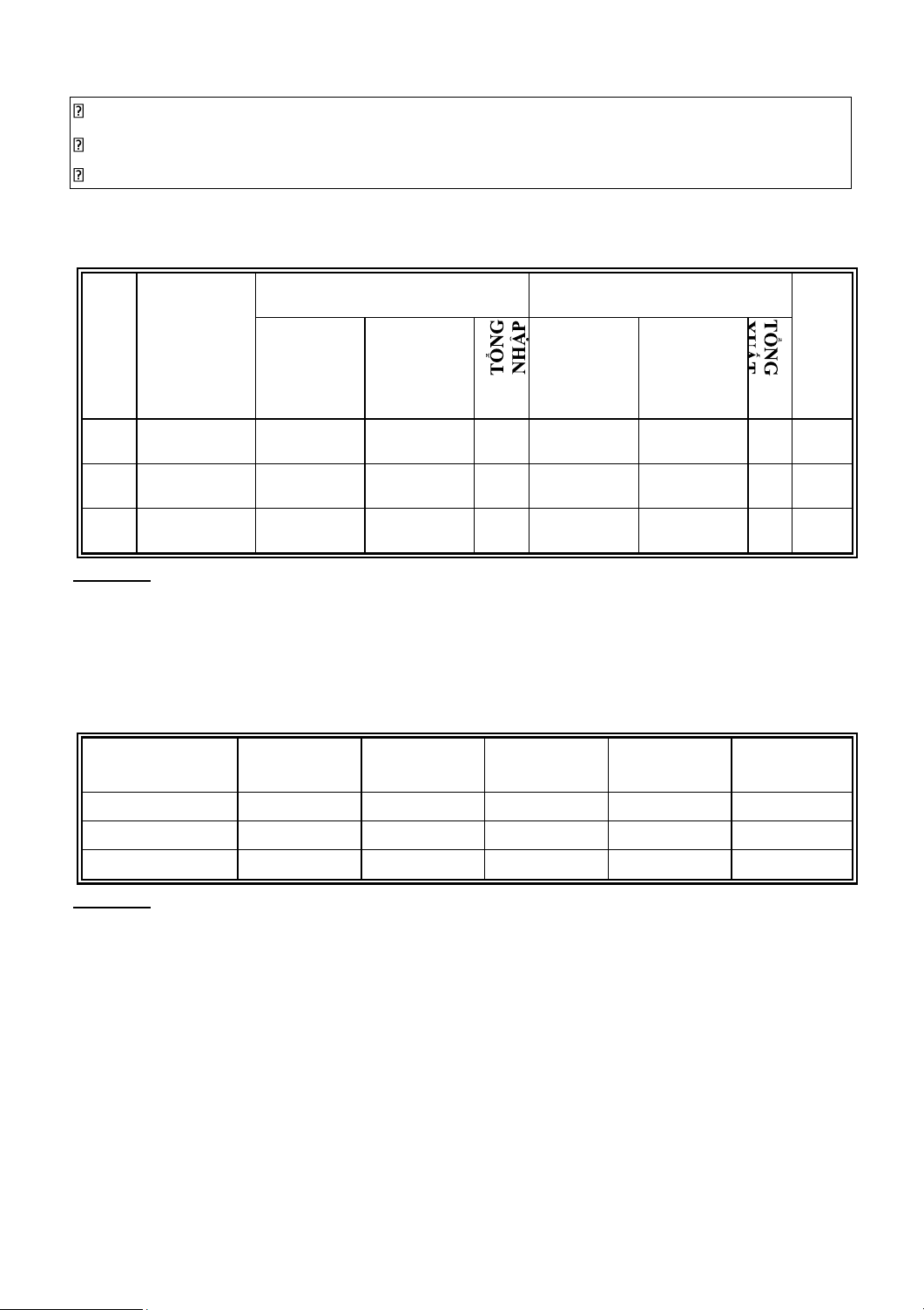 1) Tính tổng nhập, tổng xuất (từ phải sang trái, tính từ dưới lên trên)