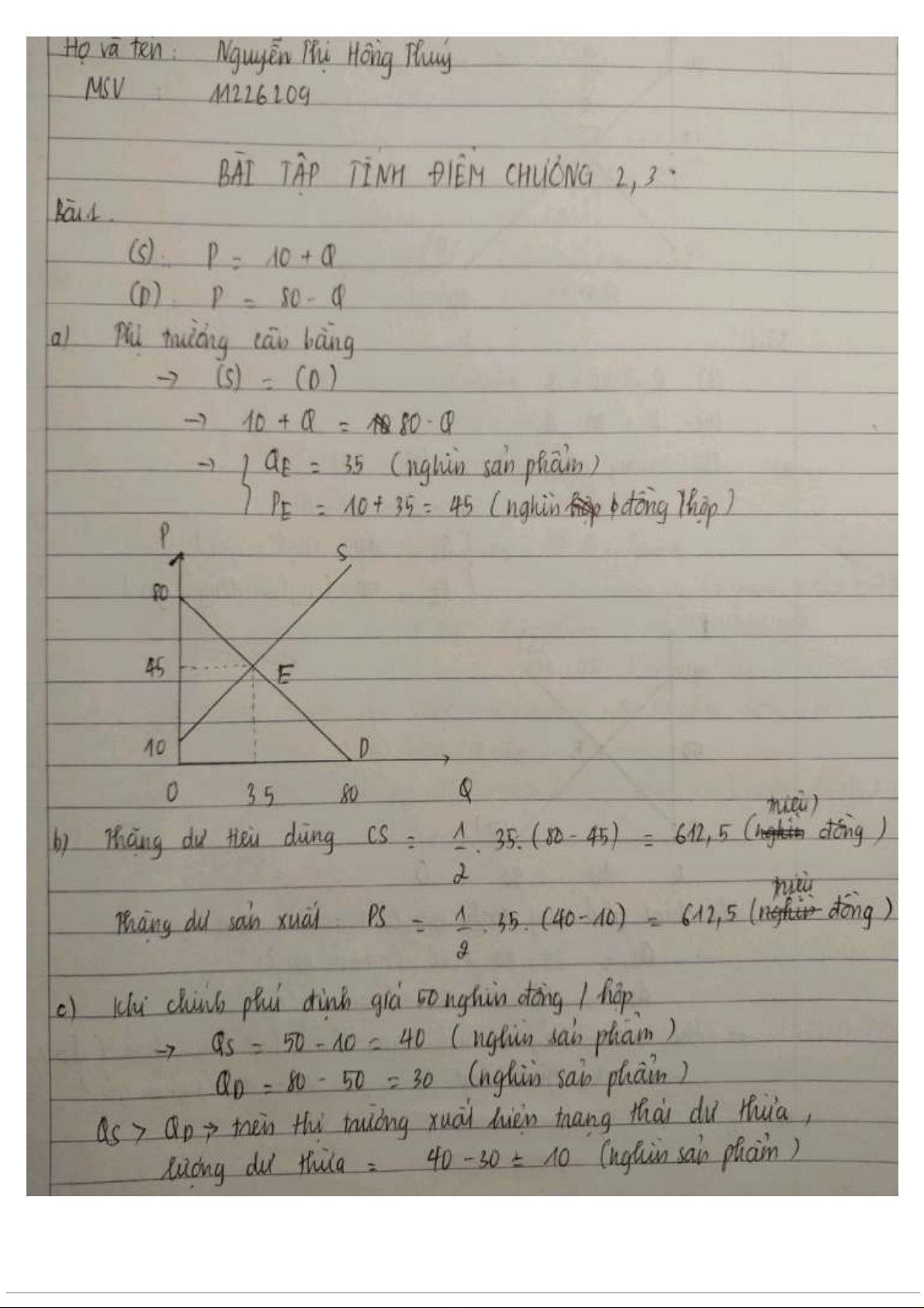 Bài tập tính điểm chương 2,3 môn Kinh tế vi mô | Trường Đại học Kinh Tế Quốc Dân