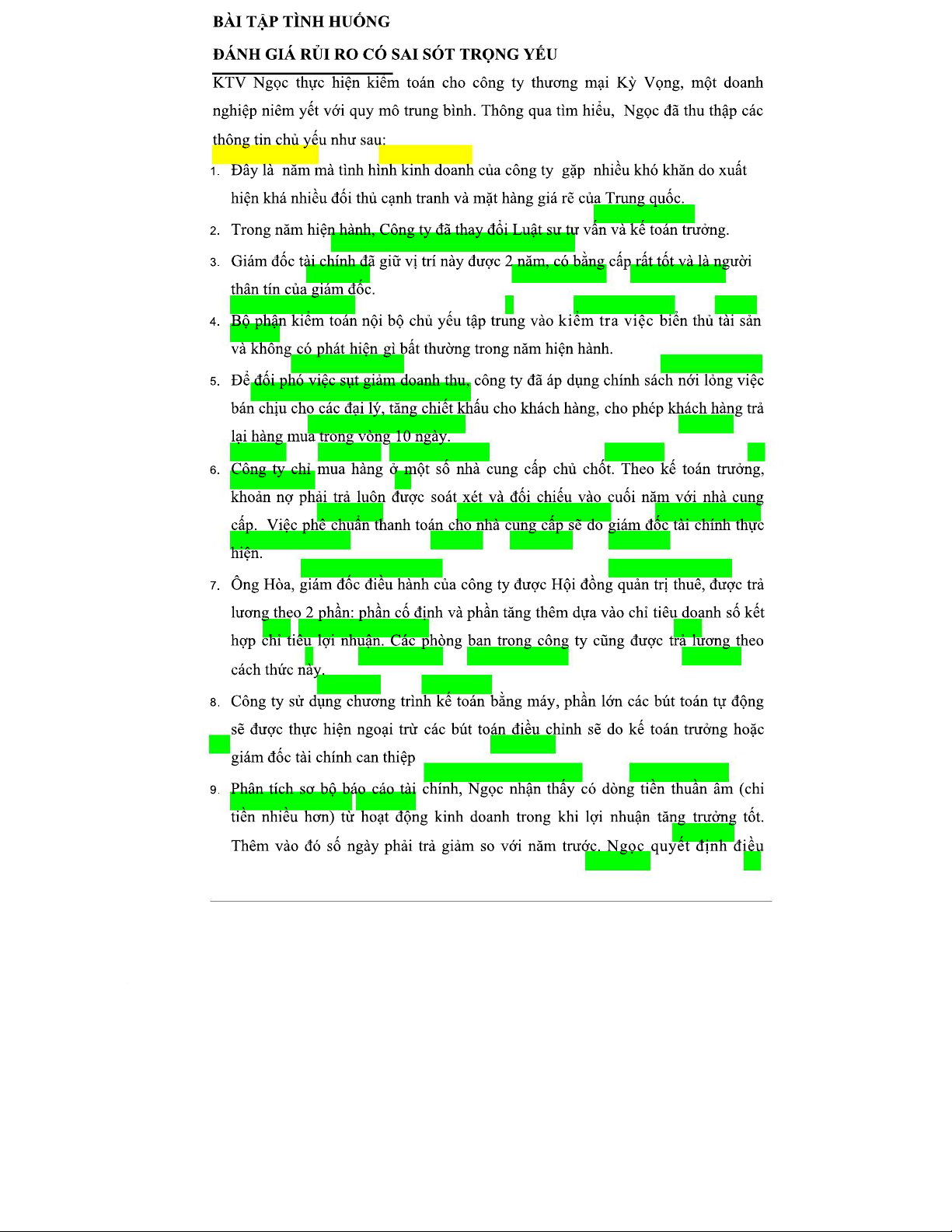Bài Tập Tình Huống: Đánh Giá Rủi Ro Trong Kiểm Toán BCTC