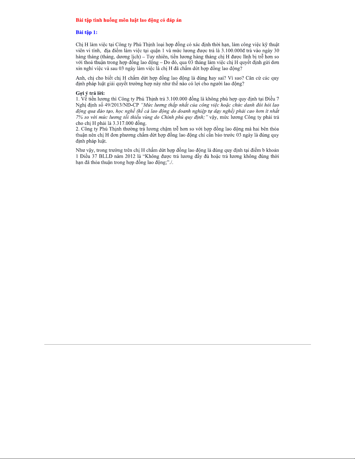 Bài Tập Tình Huống Luật Lao Động: Phân Tích và Giải Đáp Có Đáp Án