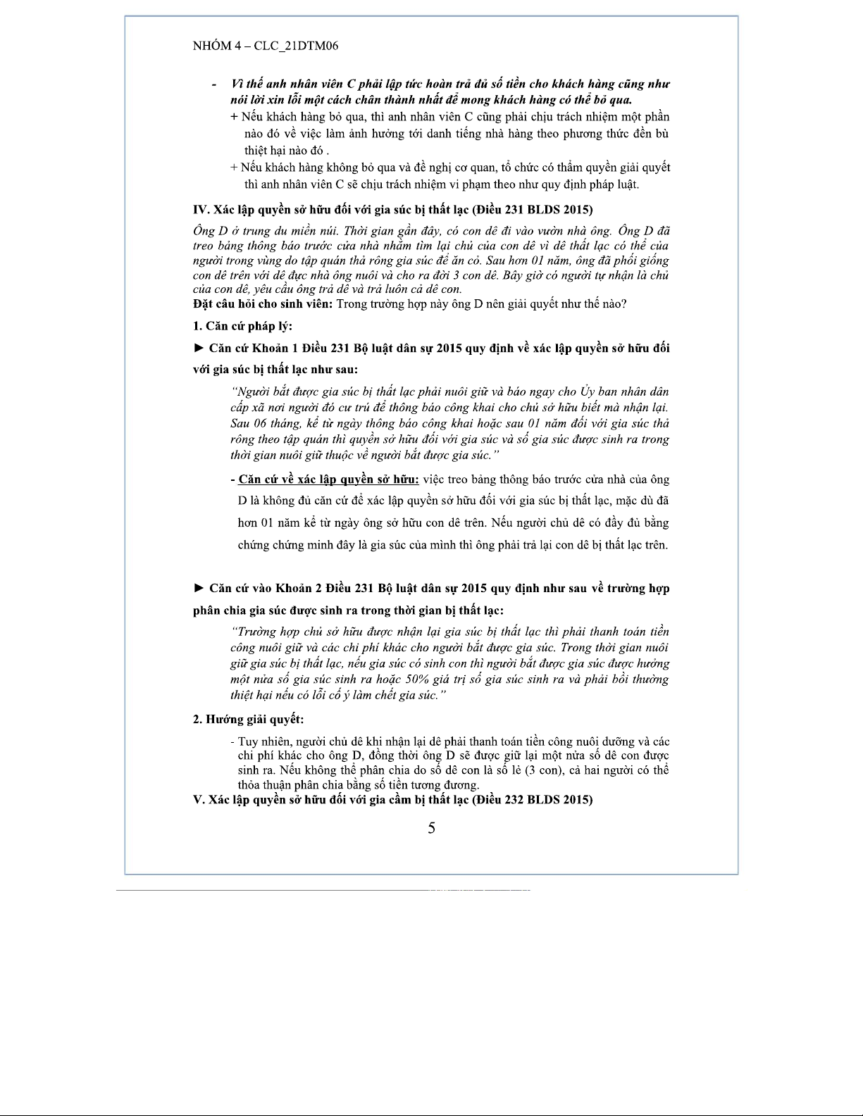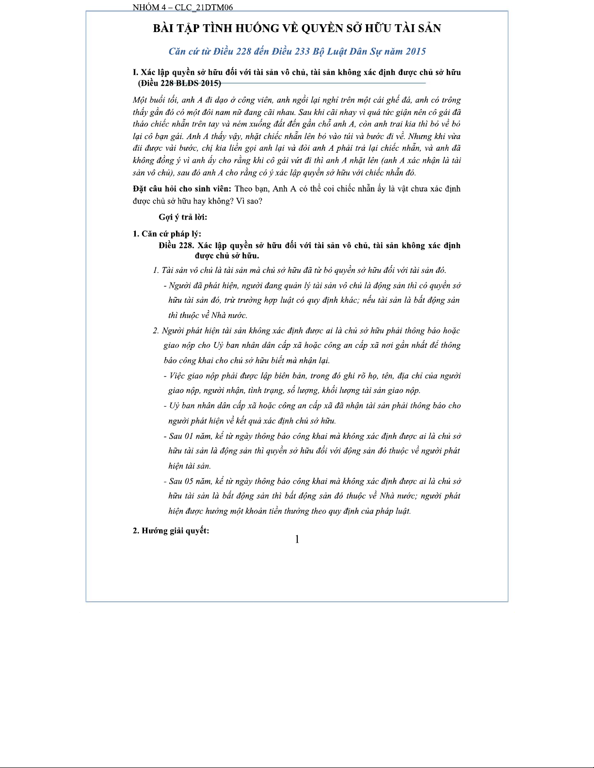 Bài Tập Tình Huống: Quyền Sở Hữu Tài Sản Theo BLDS 2015