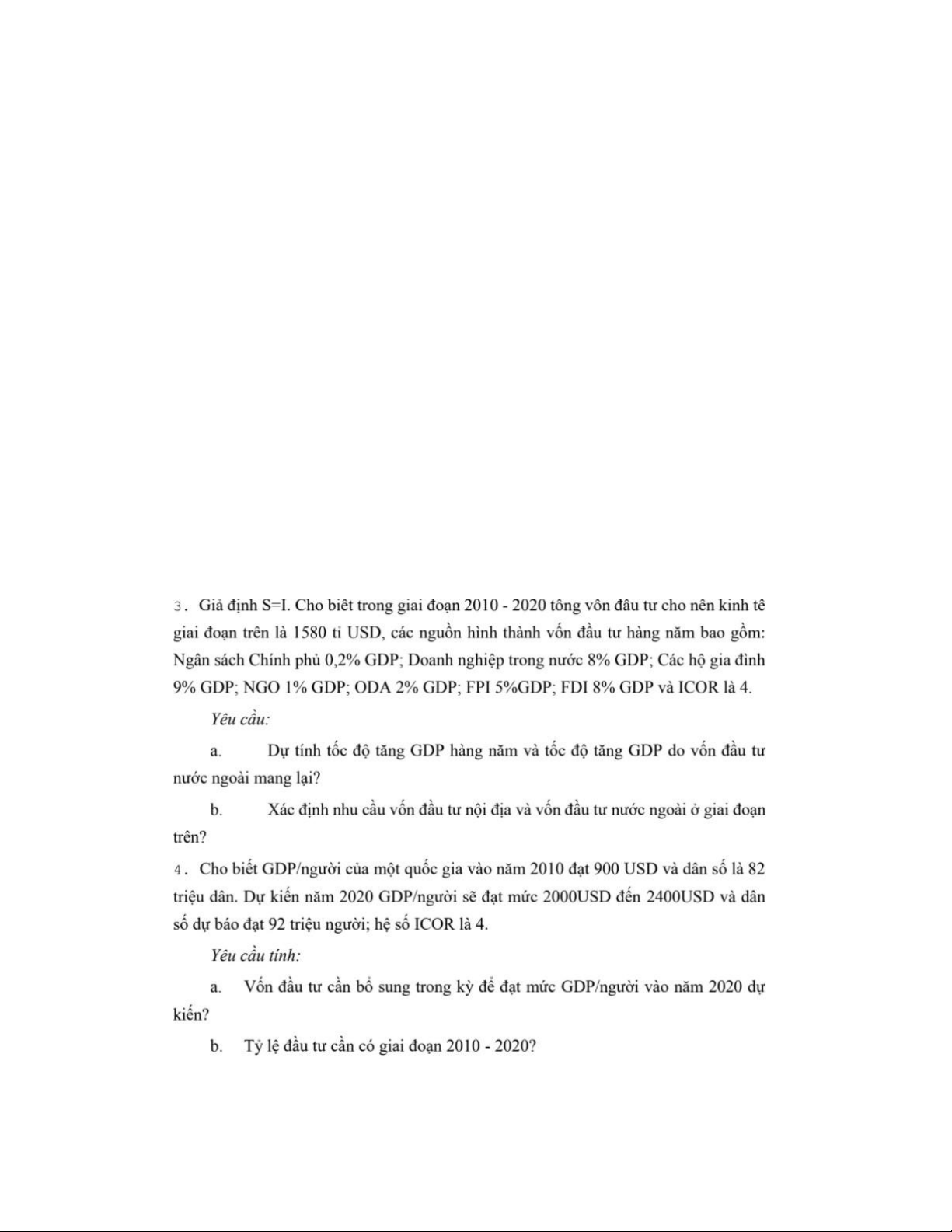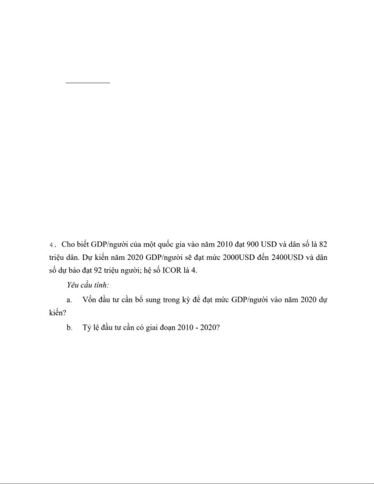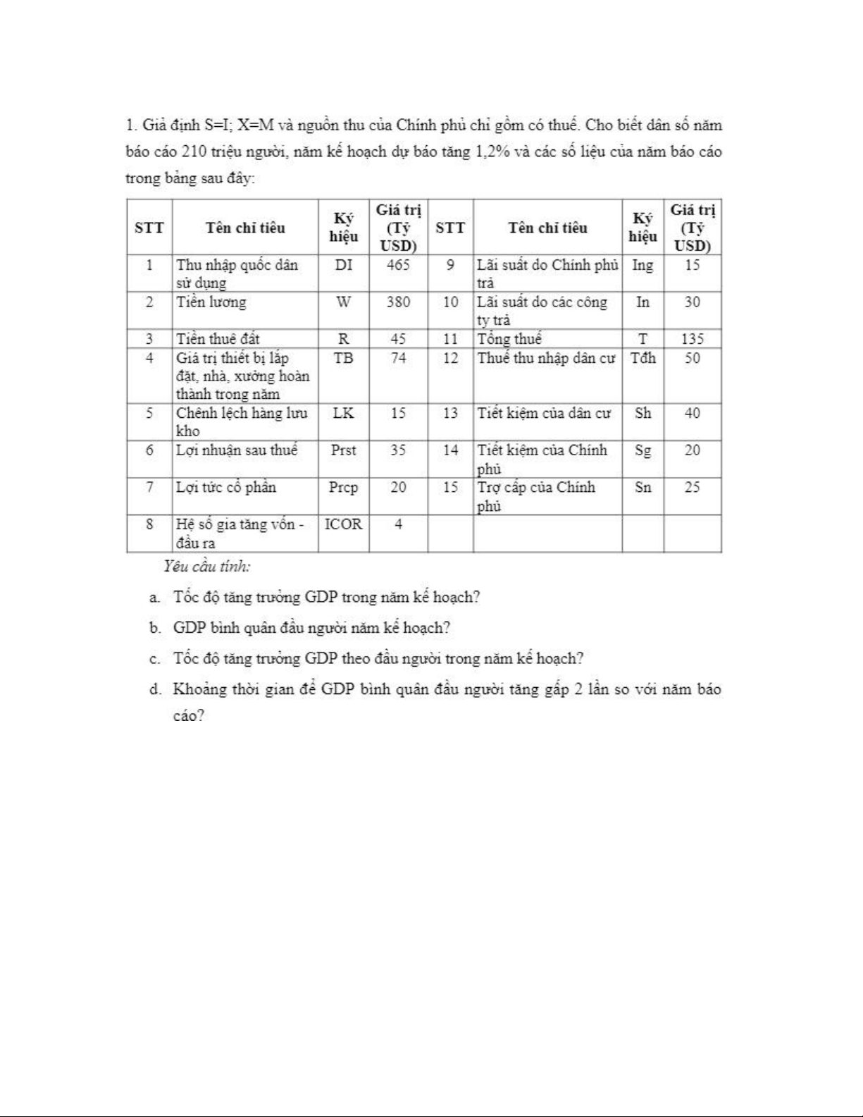 c. Tốc độ tăng trưởng GDP theo đầu người trong năm kế hoạch: Gy/p=Gy-Gp=3.78%-1.2%=2.58% d. Ta có: