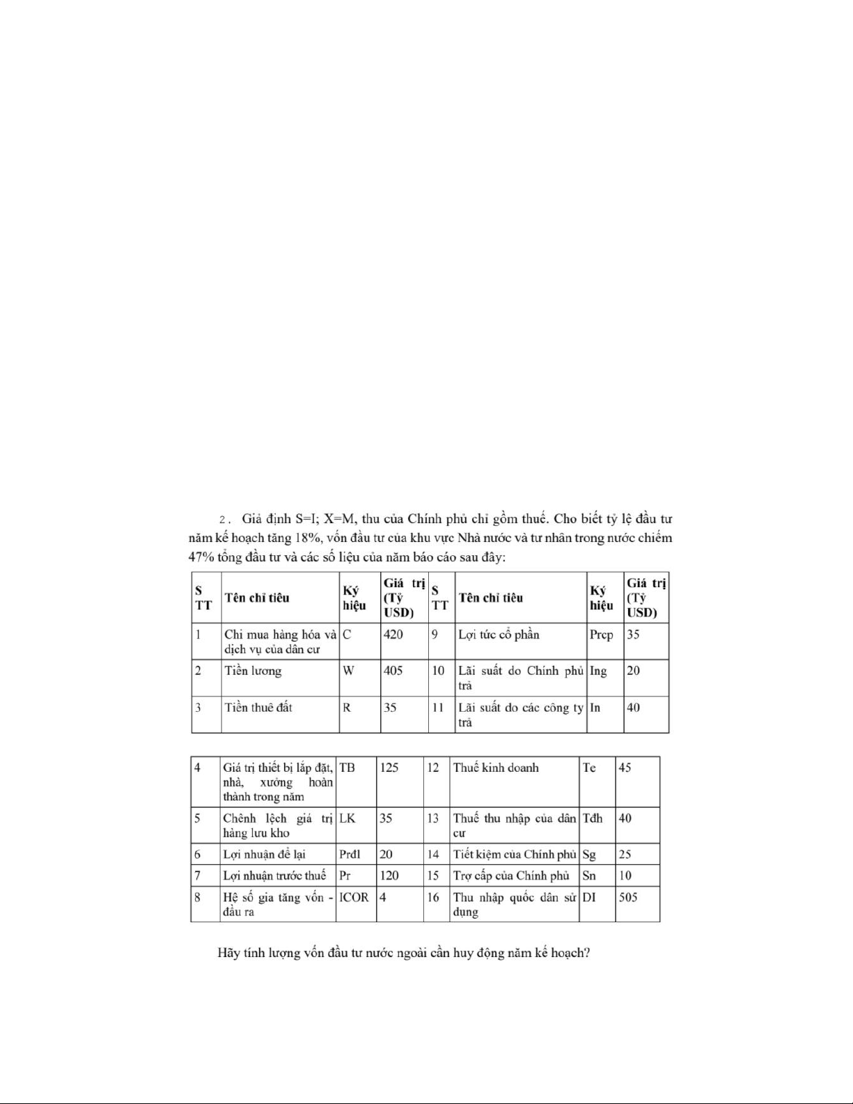 hoặc Id = I - If = 1580 - 761,44 = 818,56 tỷ USD BÀI LÀM