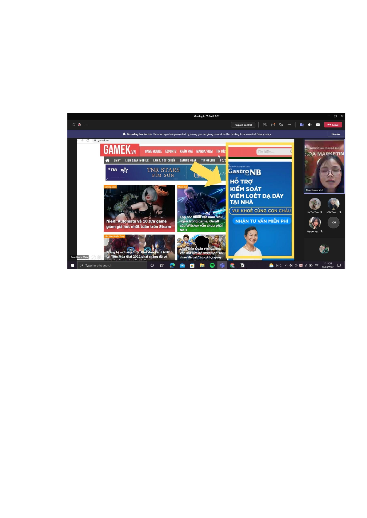 - Đối tượng của sp: ng già >< trang web về game (giới trẻ) ⇒ K Phù hợp - NX về QC này: