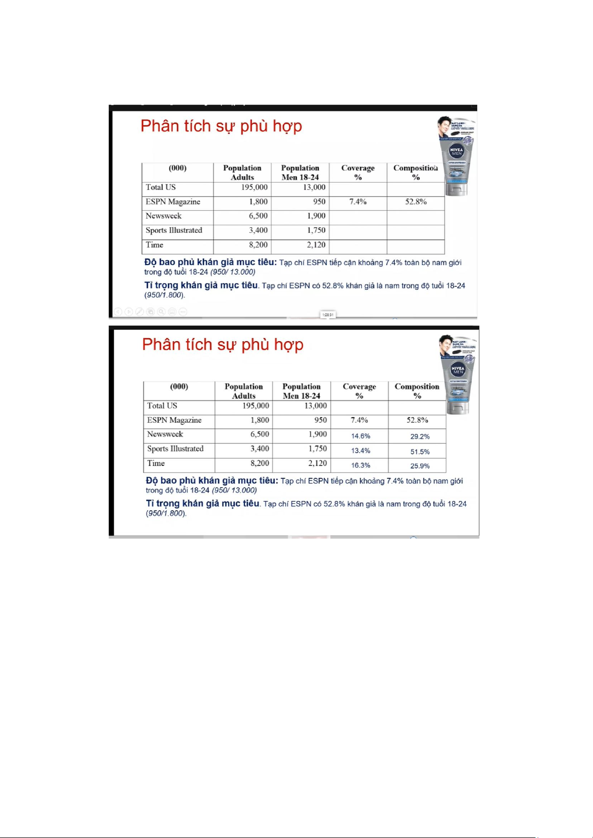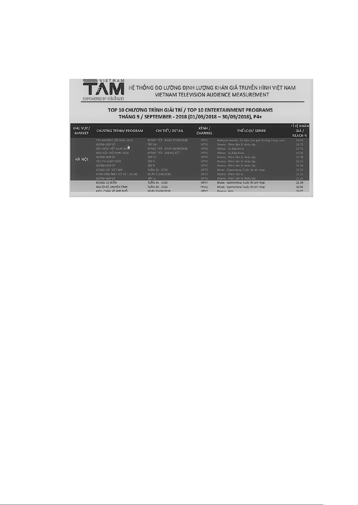 Rating/Reach: lượng TA mà thương hiệu có thể tiếp cận được. Như ví dụ trên là lượng