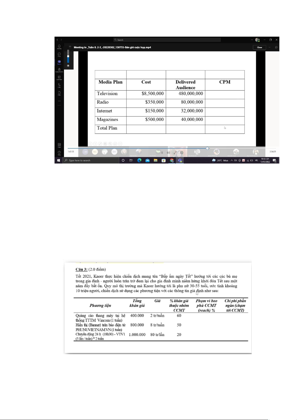 ⇒ Phương tiện Internet là có chi phí tối ưu nhất. (CPM tốt nhất) ● Bài 2