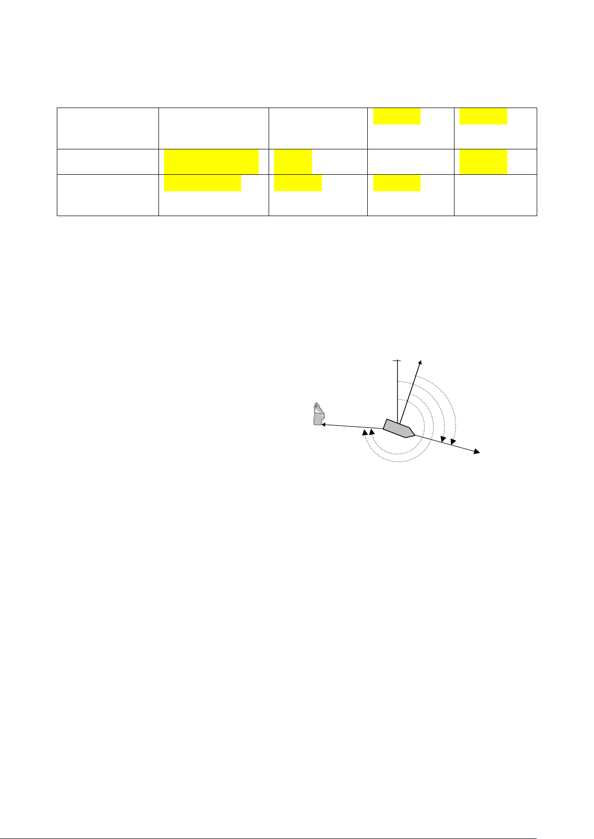 8. Hãy tính và điền các ô còn trống ở bảng bên dưới, biết: Hướng chạy tàu Ht = 550, độ