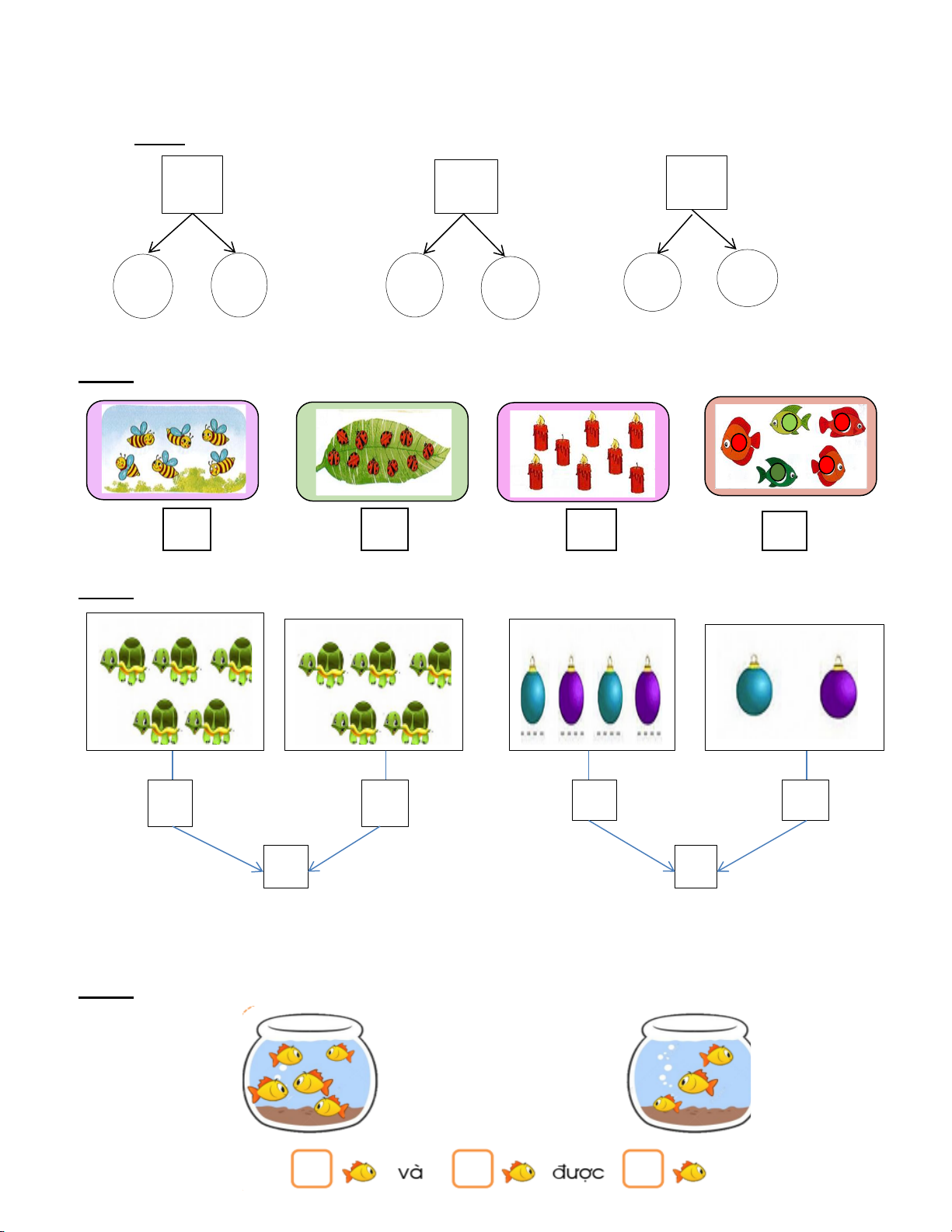 Câu 7: Vẽ tiếp để mỗi ô trống có kết quả bằng 5