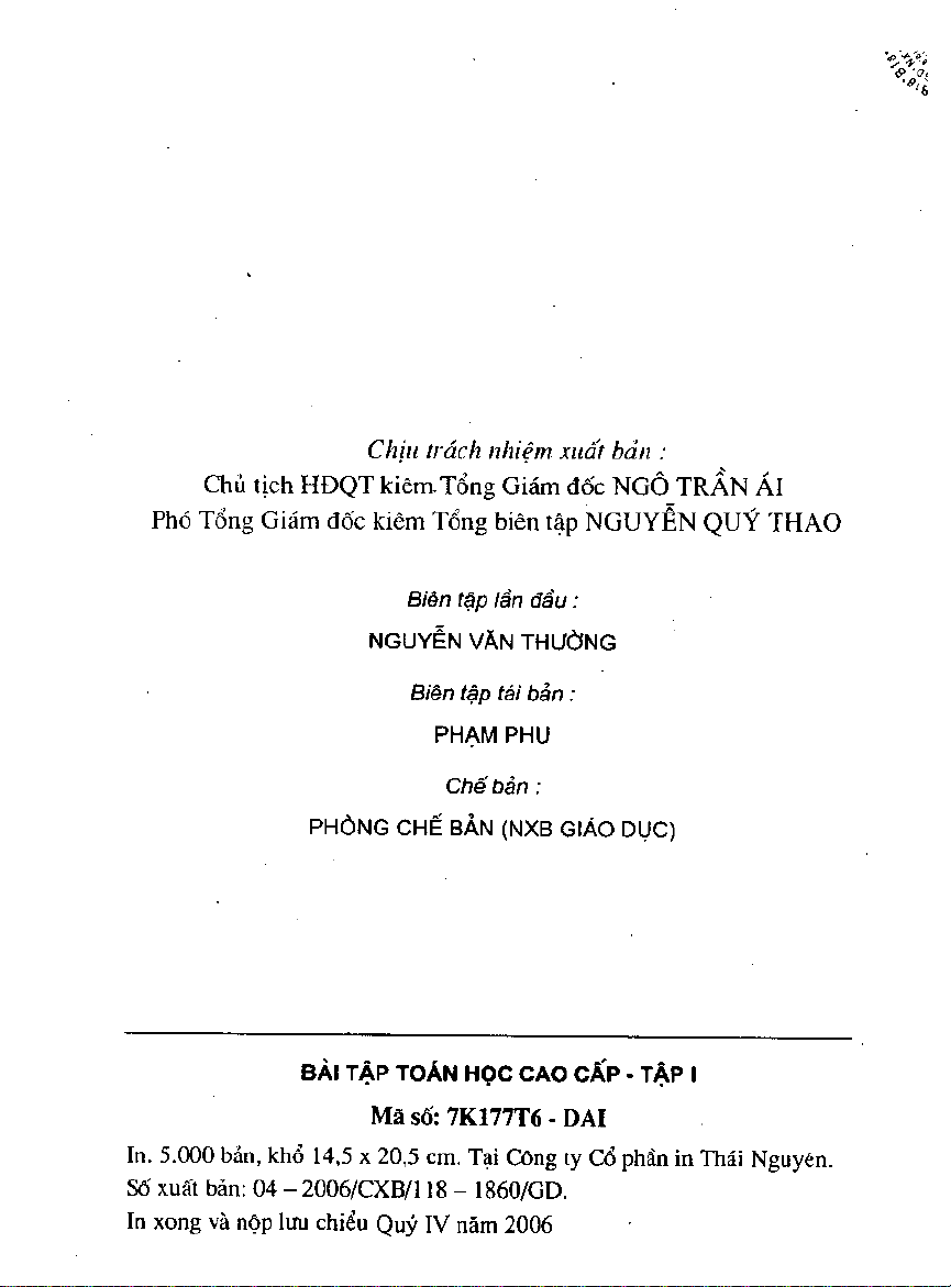 - BÀI TẬP TOÁN CAO CẤP. TẬP 1