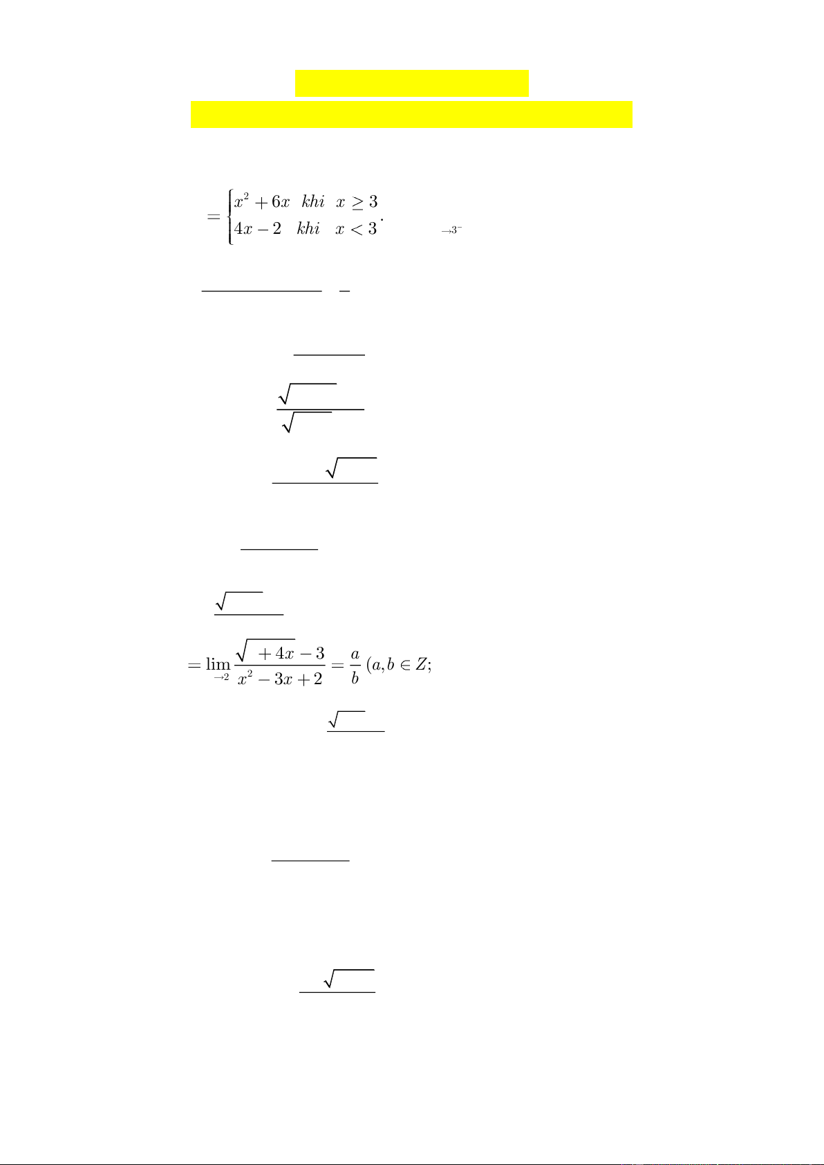 Bài 5. Tính giới hạn lim 2 x→2 x − 4 2 x + ax −12