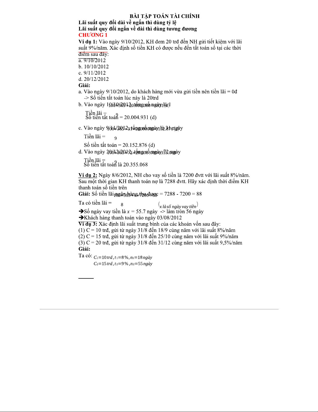 BÀI TẬP TOÁN TÀI CHÍNH - TỔNG HỢP TÌNH HUỐNG THỰC HÀNH
