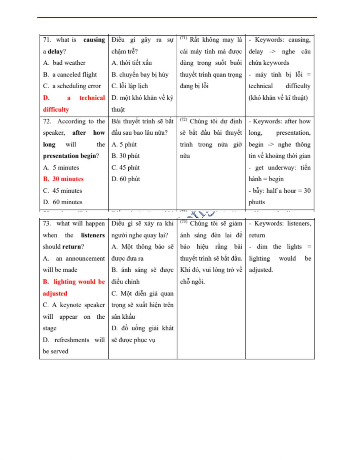 PRACTICE 12 – PART 4 71-73 announcement 71-73 Thông báo
