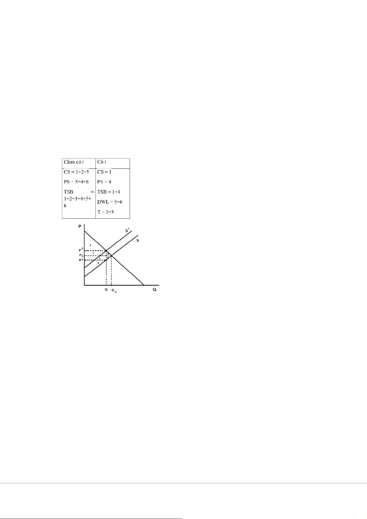 o Ban đầu với mức giá P0 thặng dư tương ứng với hình 1