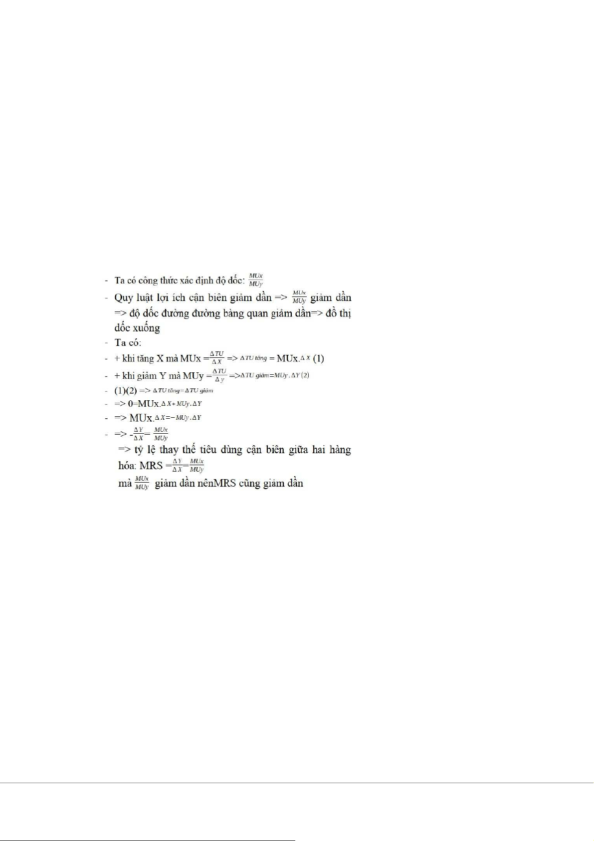 với đường MU. Theo quy luật lợi ích cận biên giảm dần, đường MU dốc