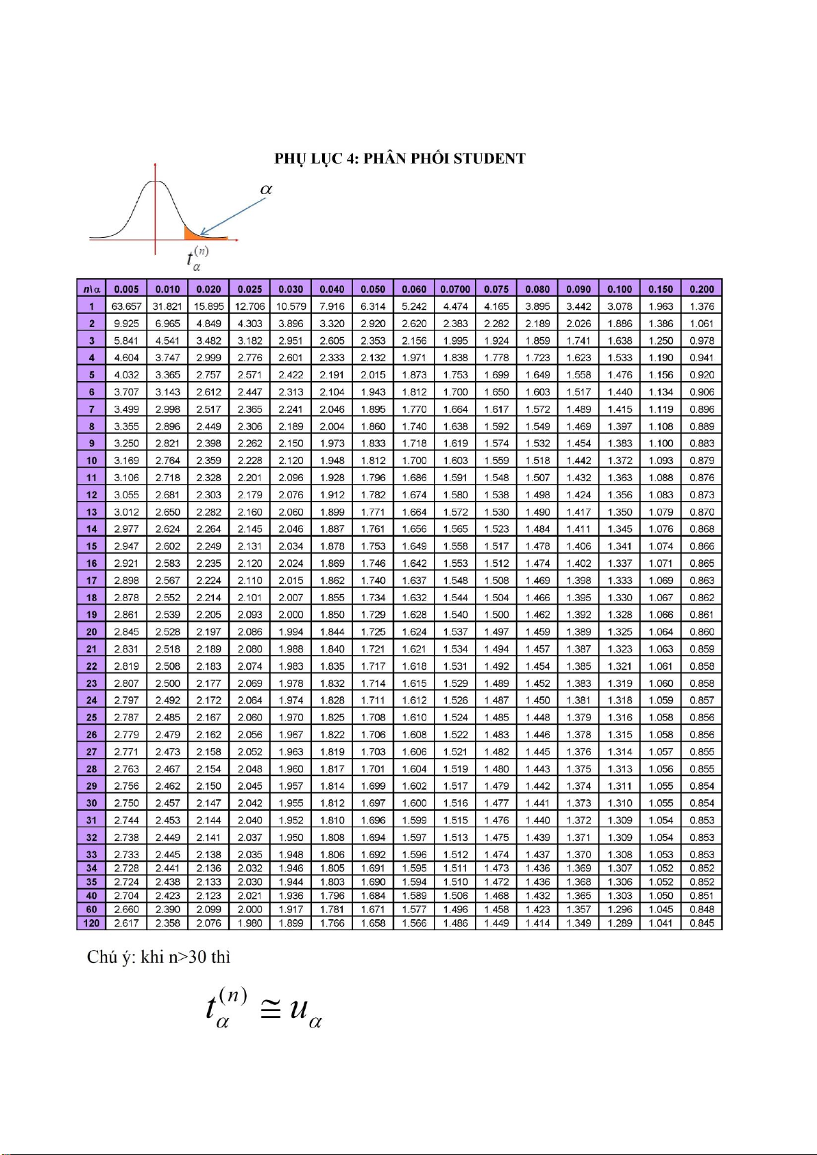 quả của việc cải tiến sản xuất đó. Cho biết: u0,05 = 1,65;u0,025 = 1,96. lOMoARcPSD| 59149108 CÁCBẢNGPHỤLỤC lOMoARcPSD| 59149108 lOMoARcPSD| 59149108 lOMoARcPSD| 59149108