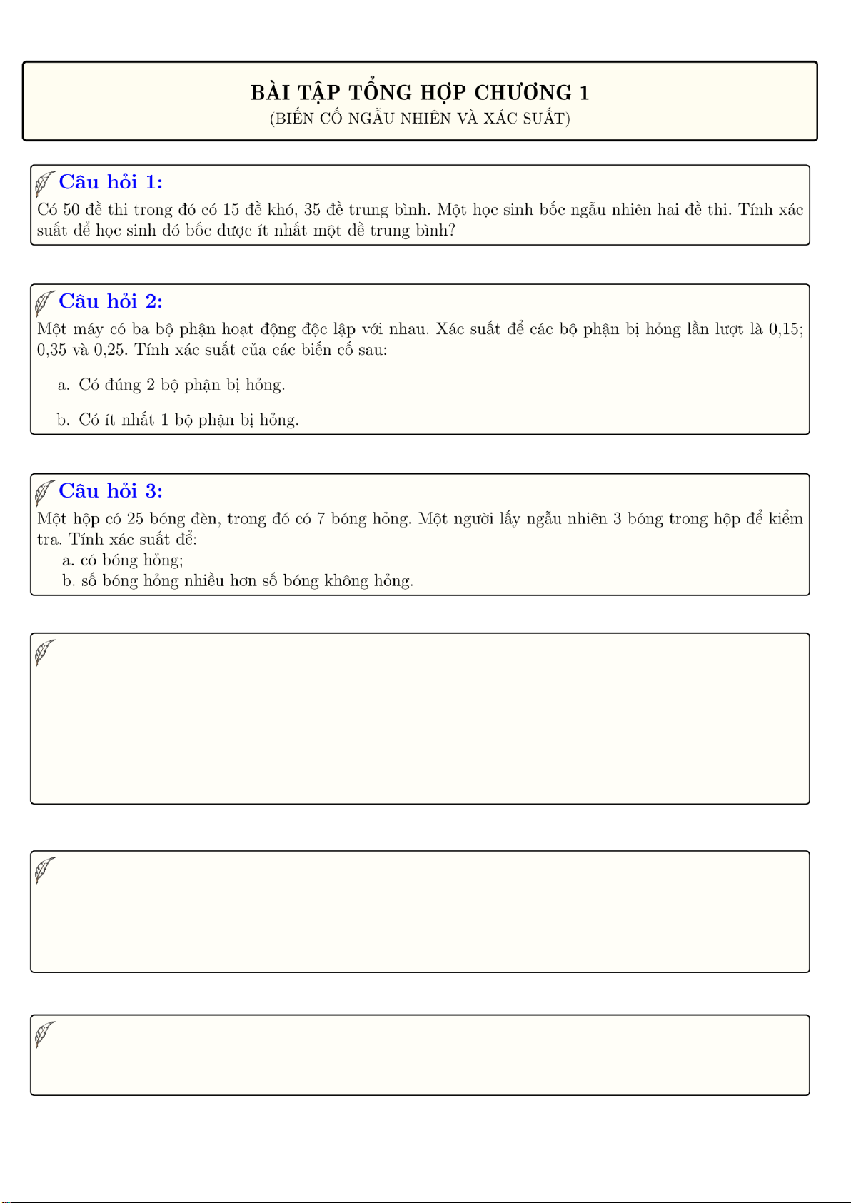 Tỉ lệ sản xuất ra phế phẩm của các máy trên, theo thứ tự, là 5%, 3% và 4%. Lấy ngẫu nhiên một sản phẩm từ lô