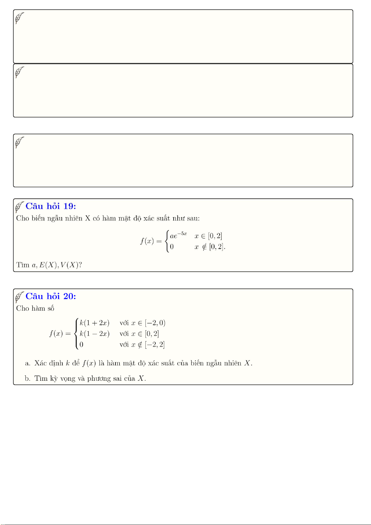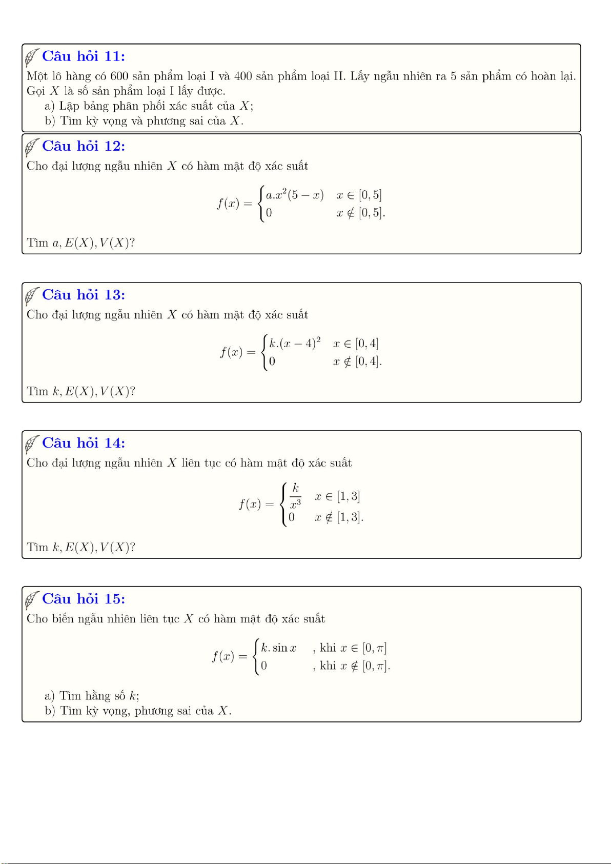 b) Tìm kỳ vọng và phương sai của X. Câu hỏi 17: