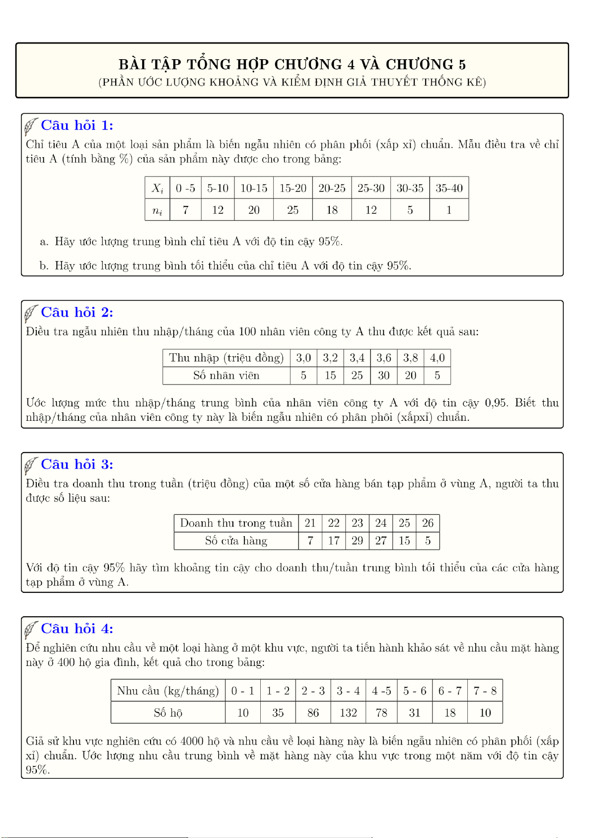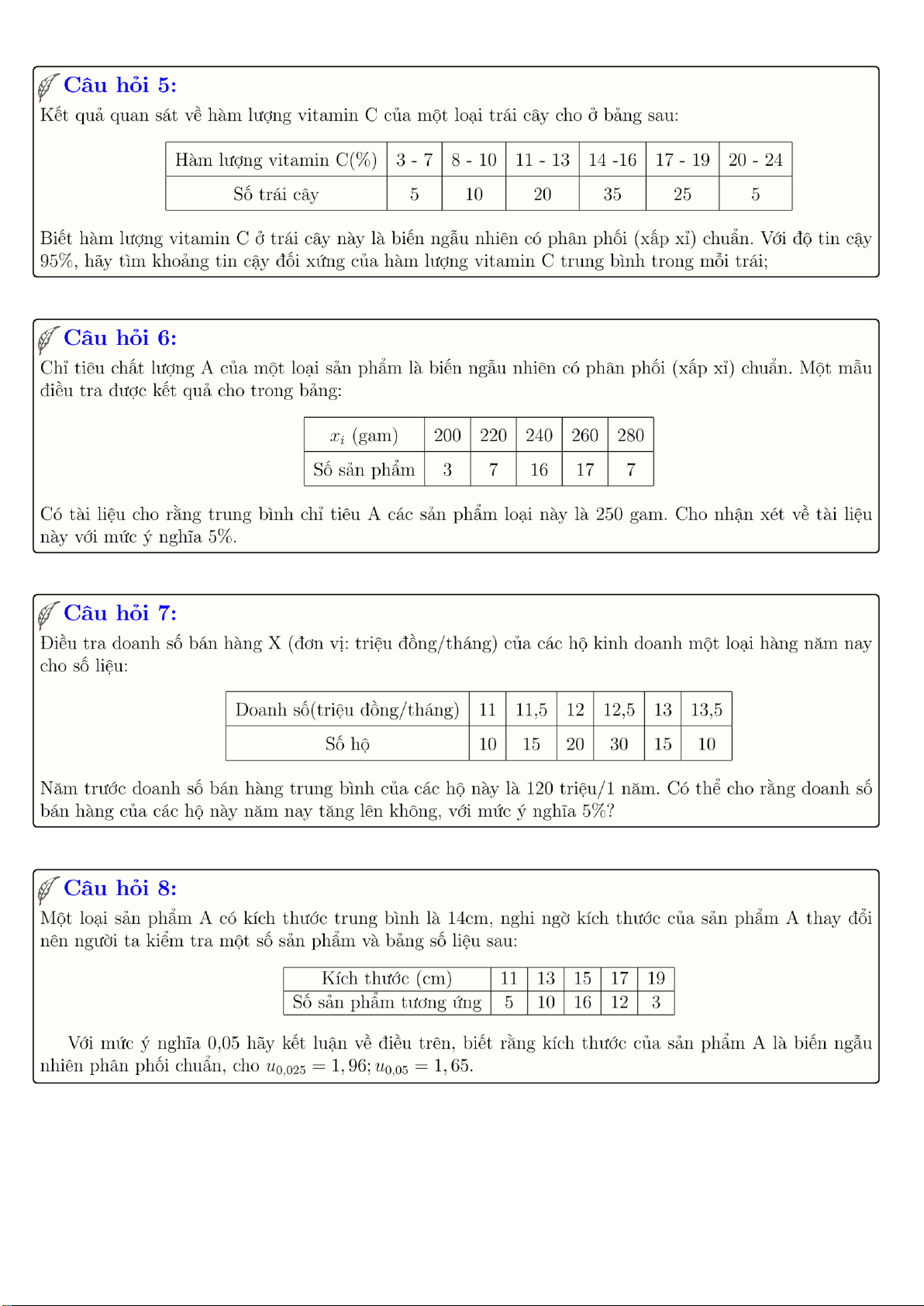 = 1,96;u0,05 = 1,65. Câu hỏi 16:
