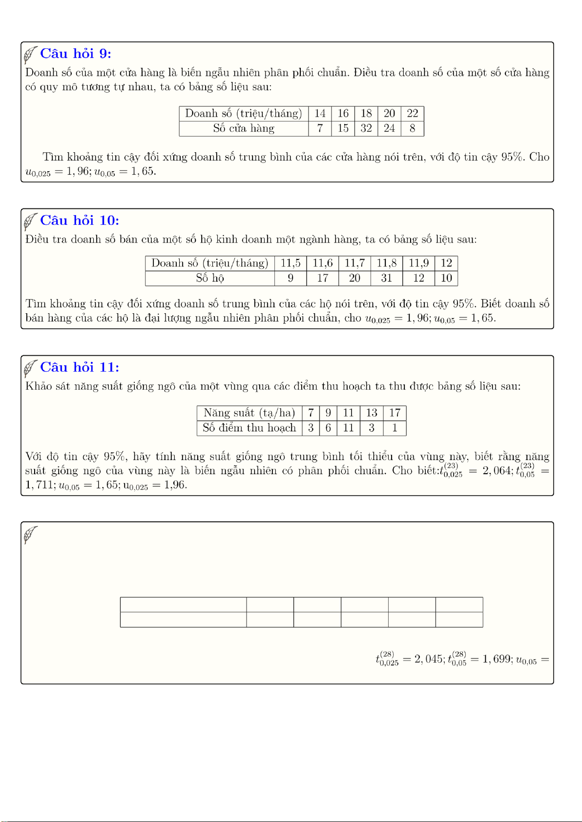 1,65;u0,025 = 1,96. Câu hỏi 13: