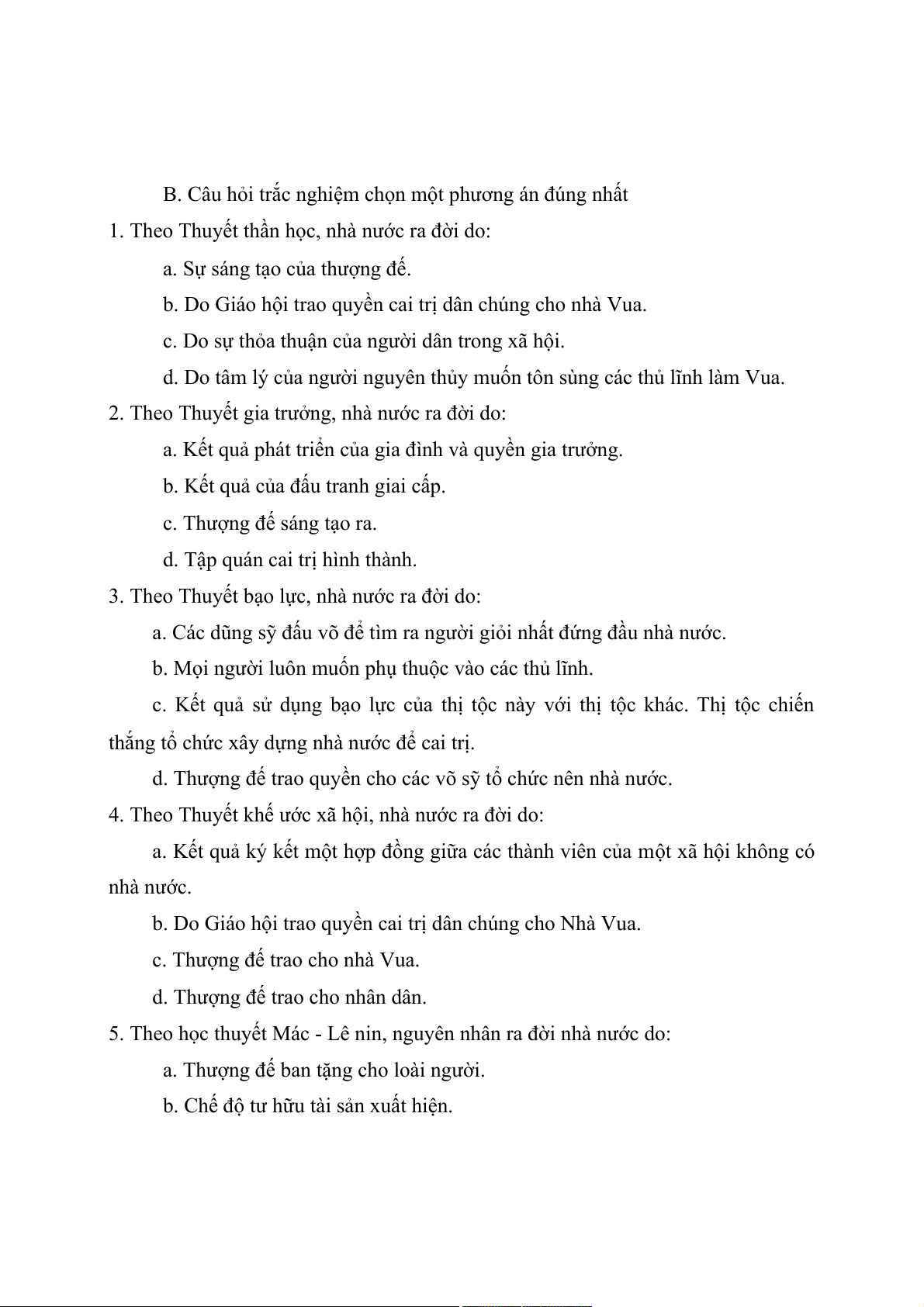 5. Theo học thuyết Mác - Lê nin, nguyên nhân ra đời nhà nước do: