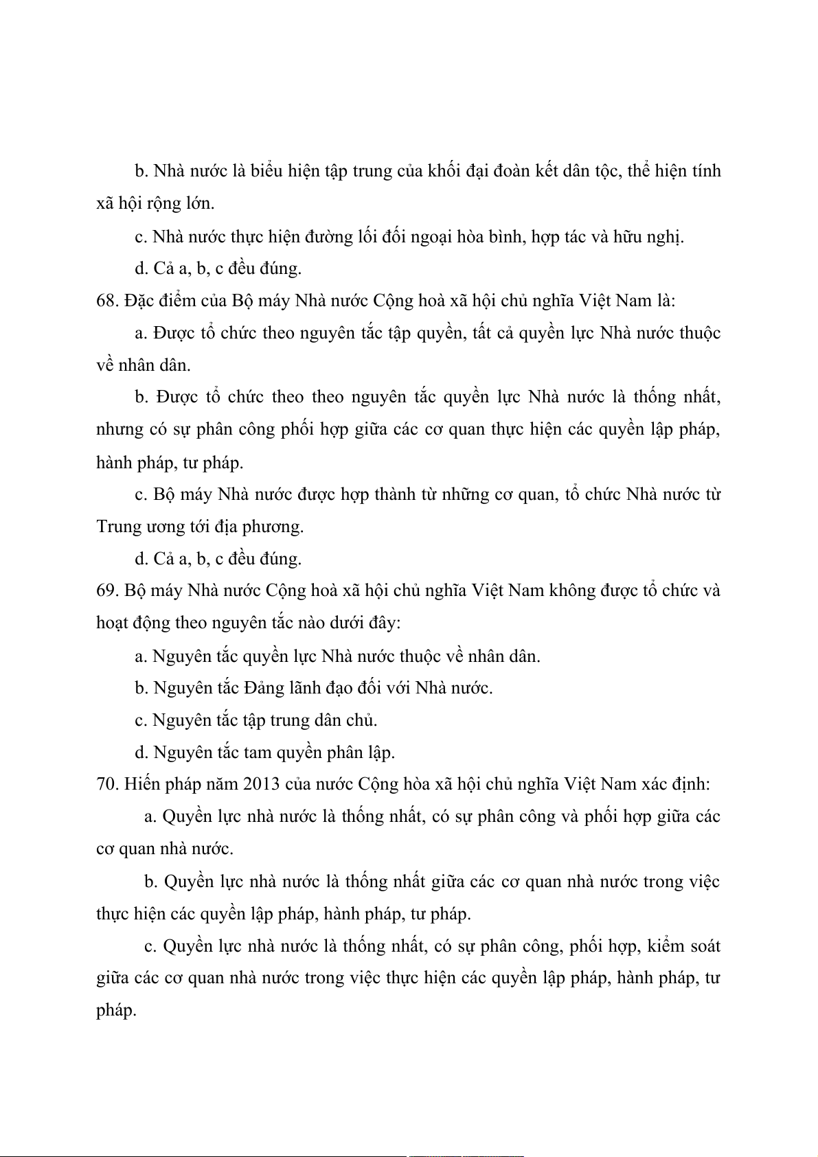68. Đặc điểm của Bộ máy Nhà nước Cộng hoà xã hội chủ nghĩa Việt Nam là: