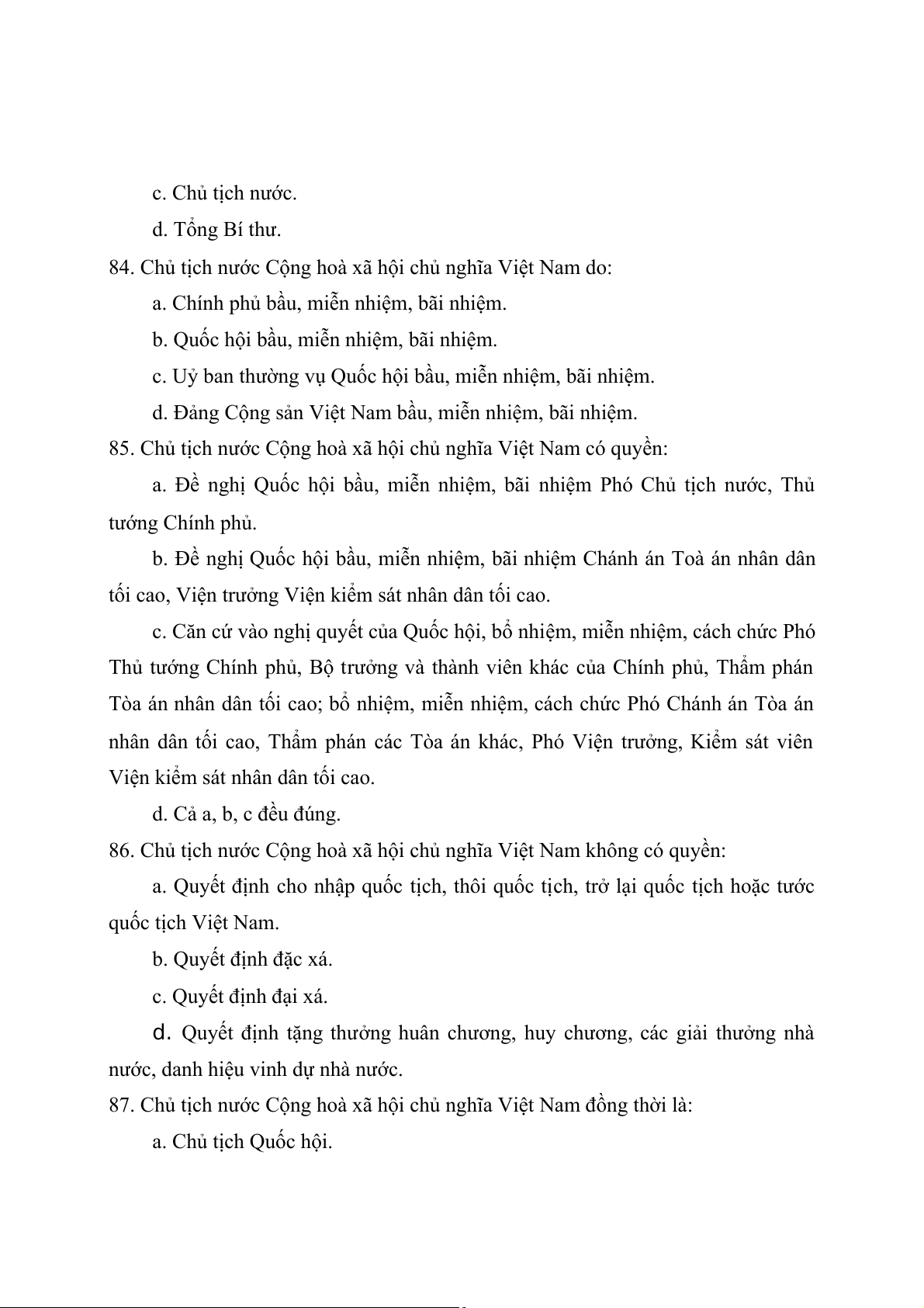 87. Chủ tịch nước Cộng hoà xã hội chủ nghĩa Việt Nam đồng thời là: a. Chủ tịch Quốc hội.