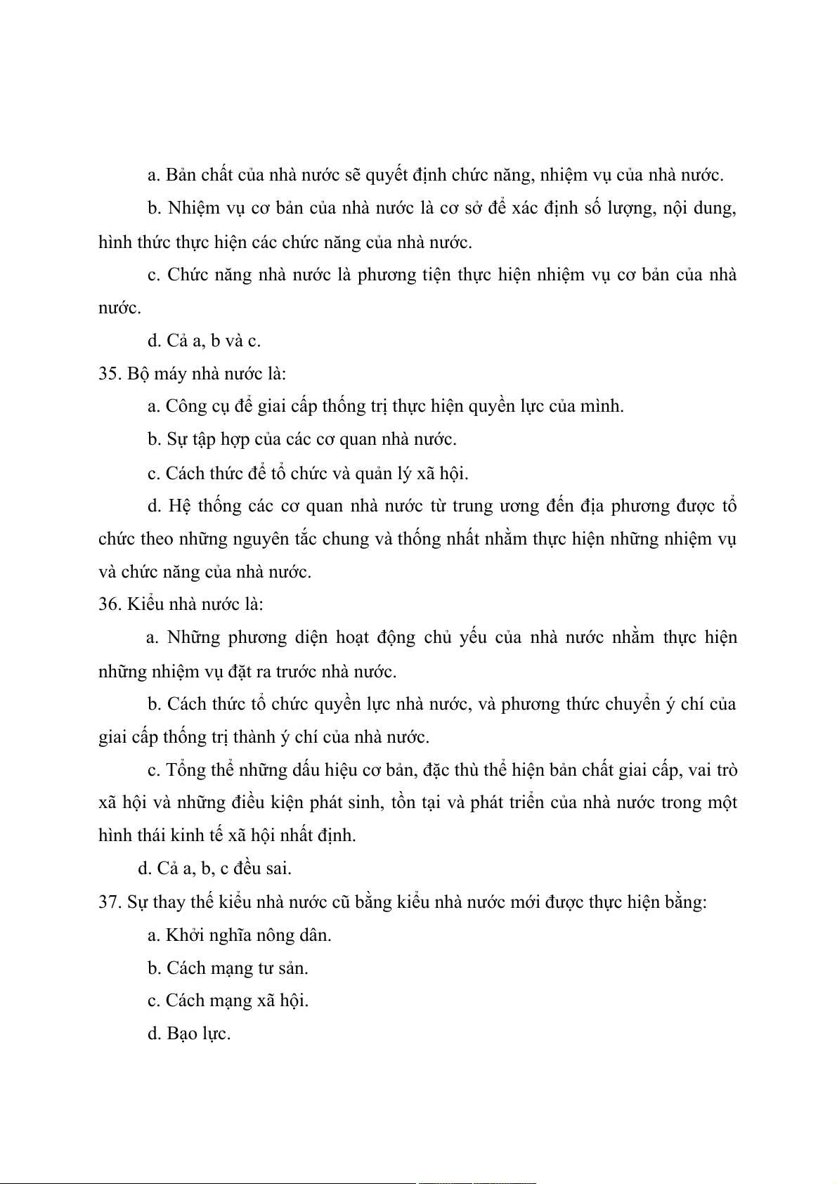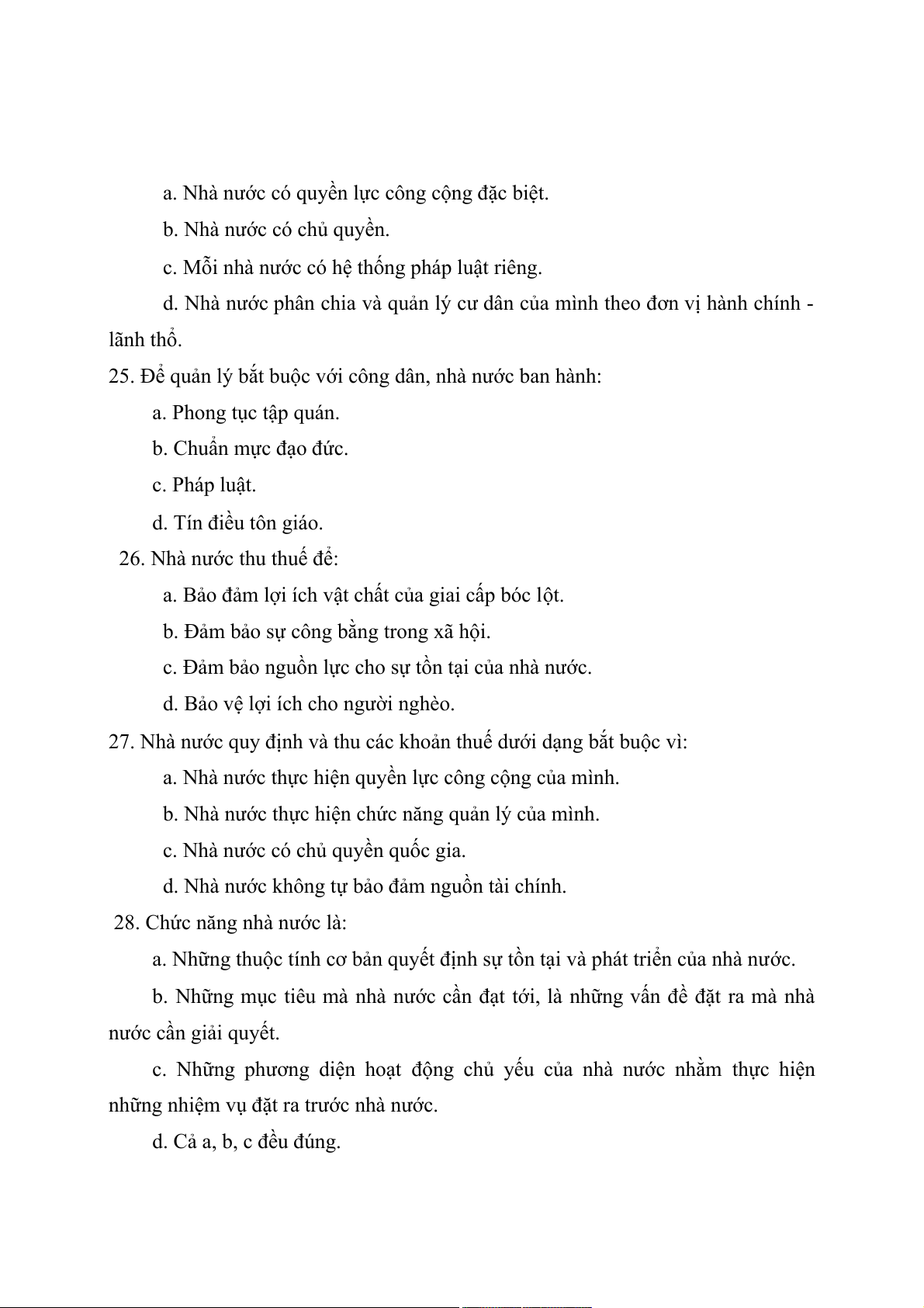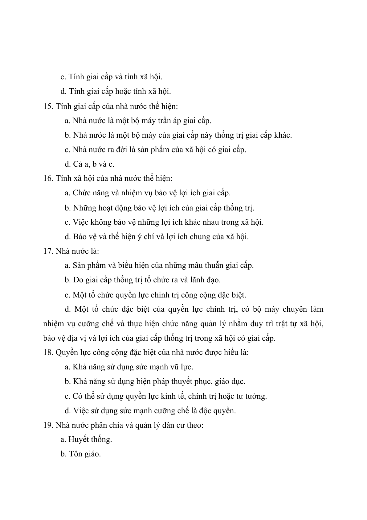 14. Bản chất nhà nước thể hiện ở: a. Tính giai cấp. b. Tính xã hội.