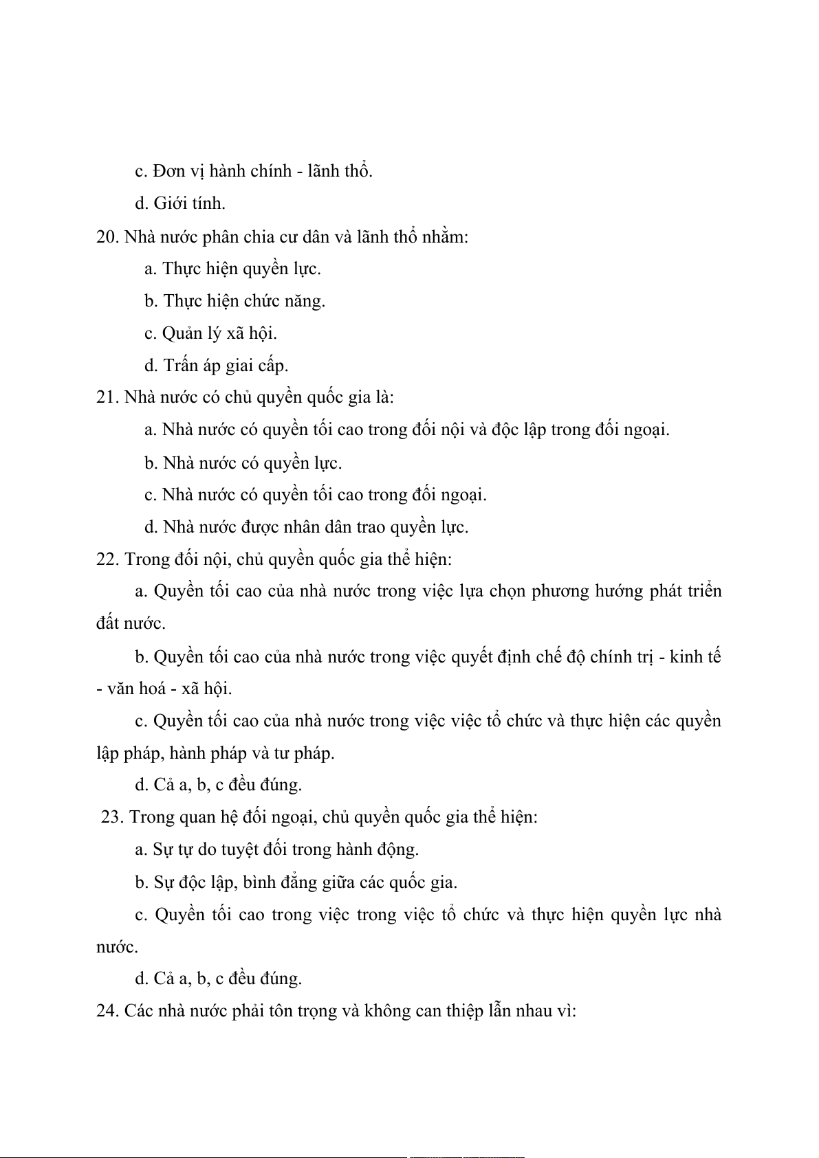 22. Trong đối nội, chủ quyền quốc gia thể hiện: