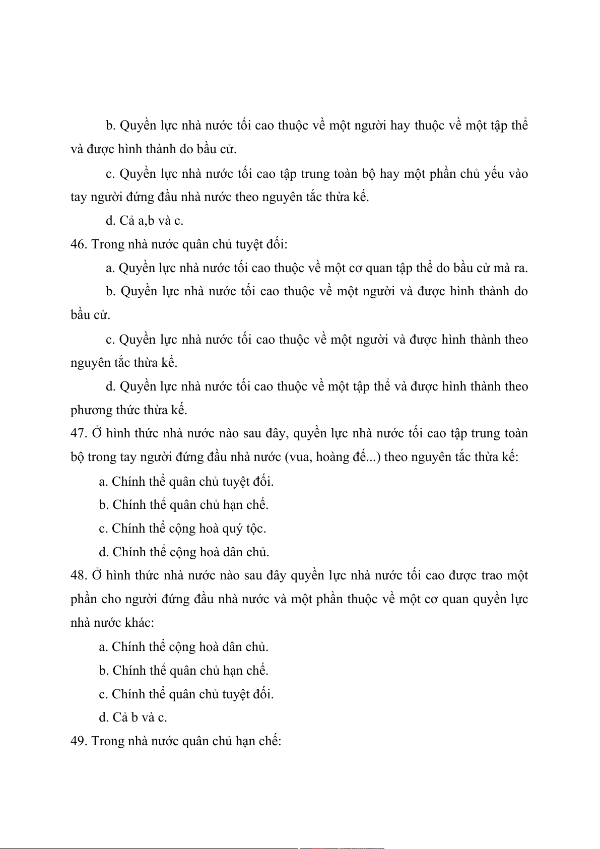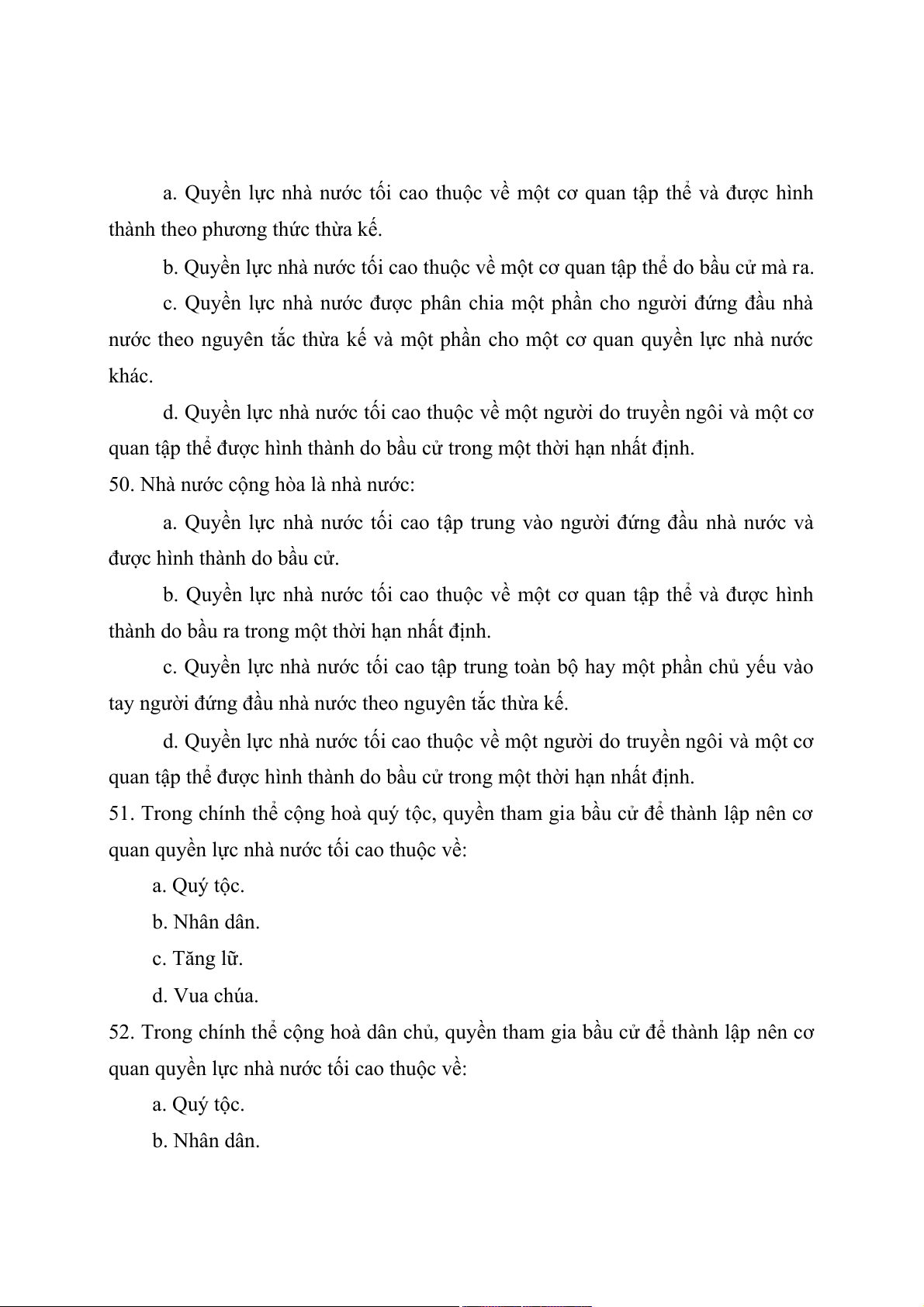 c. Quyền tối cao trong việc trong việc tổ chức và thực hiện quyền lực nhà nước. d. Cả a, b, c đều đúng.