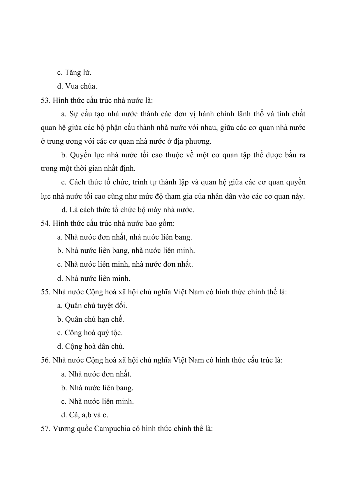 c. Ủy ban thường vụ Quốc hội. d. Cả a, b và c.