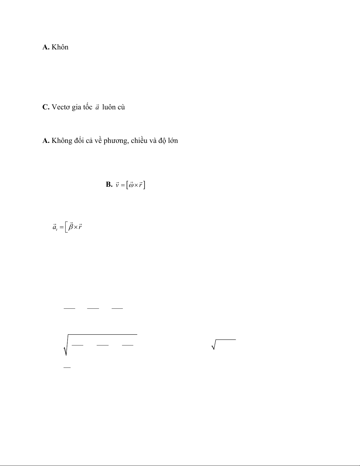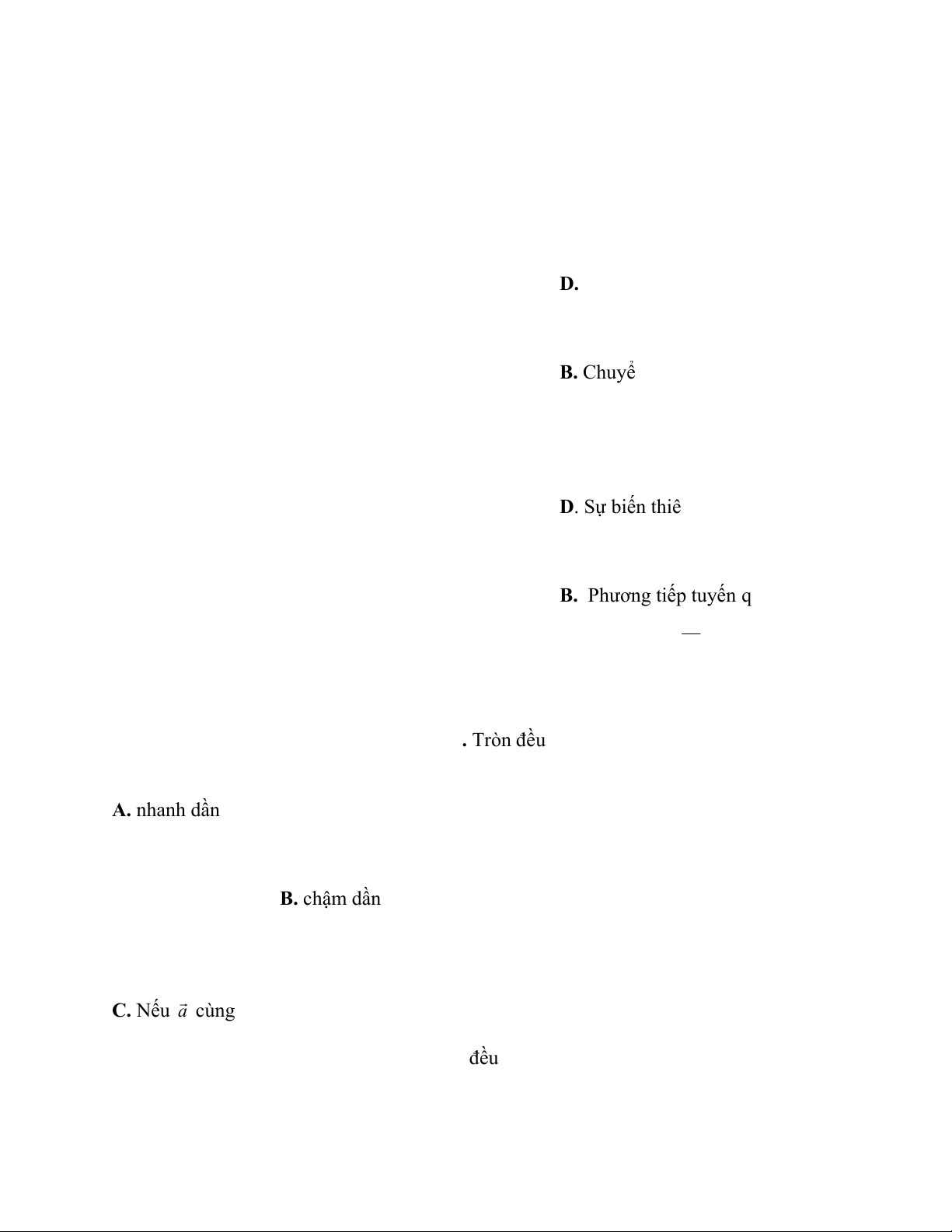 Câu 21: Trong chuyển động tròn, các vectơ vận tốc dài v , gia tốc góc và gia tốc tiếp