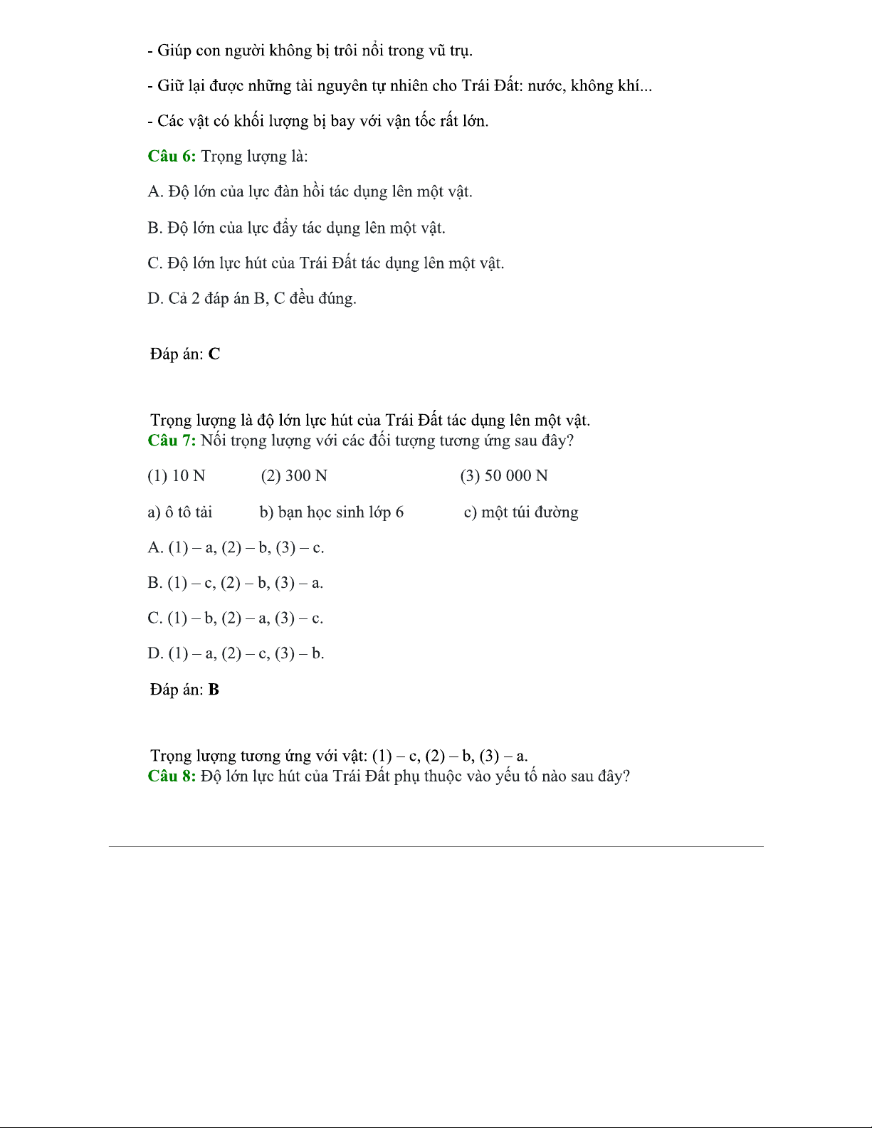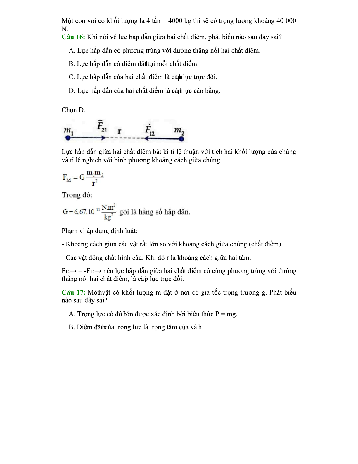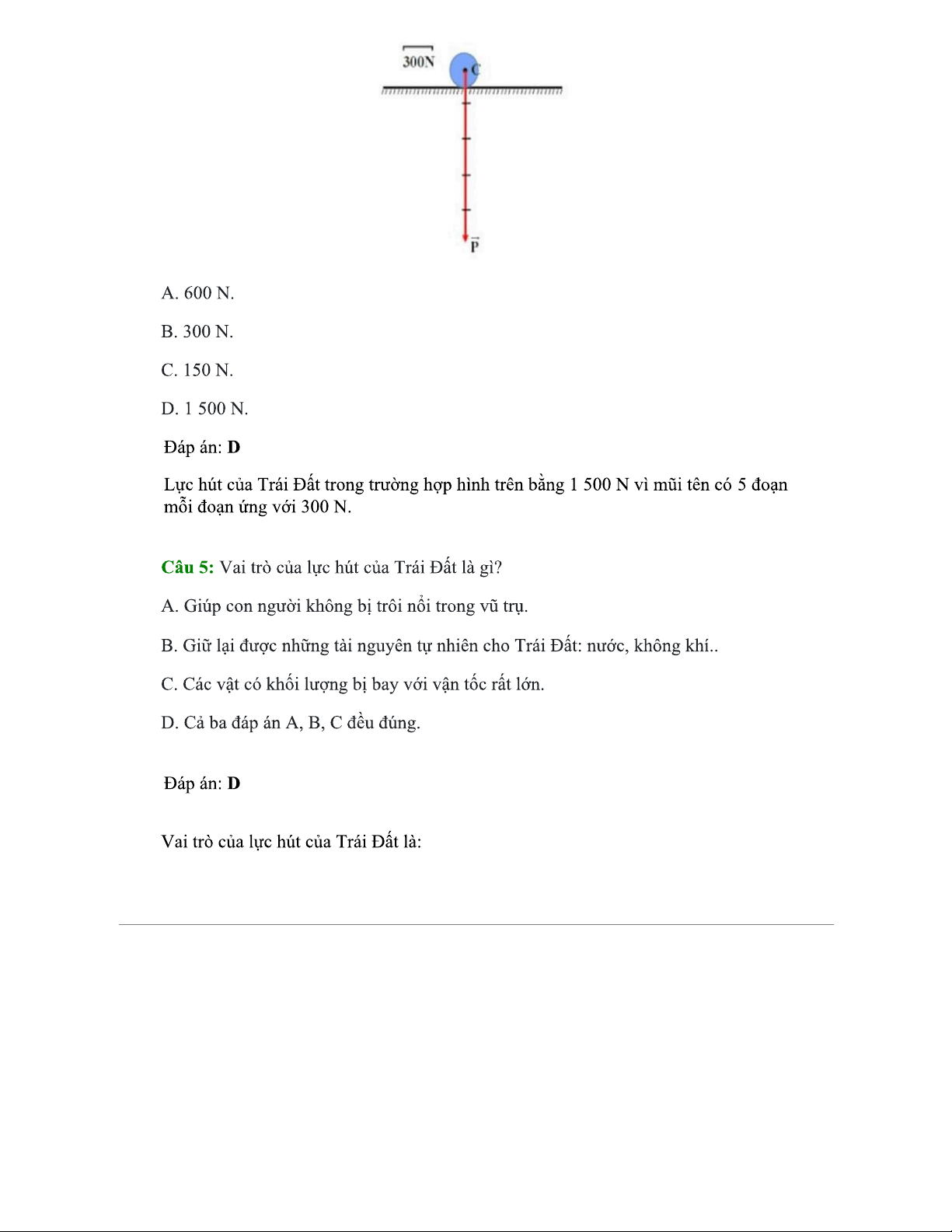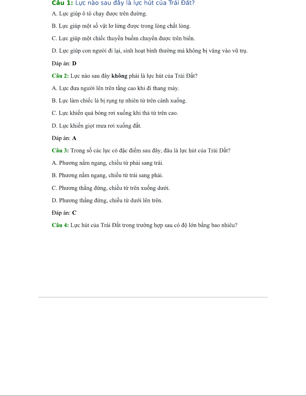 Bài tập trắc nghiệm chương 5: Lực hút của Trái Đất