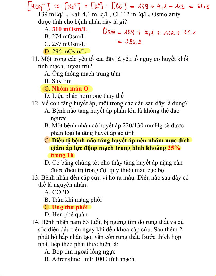 10. Một bệnh nhân vào viện có các giá trị xét nghiệm sau: Na