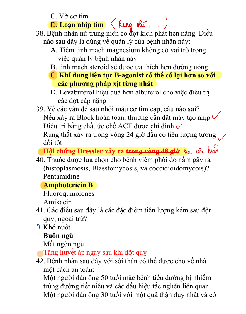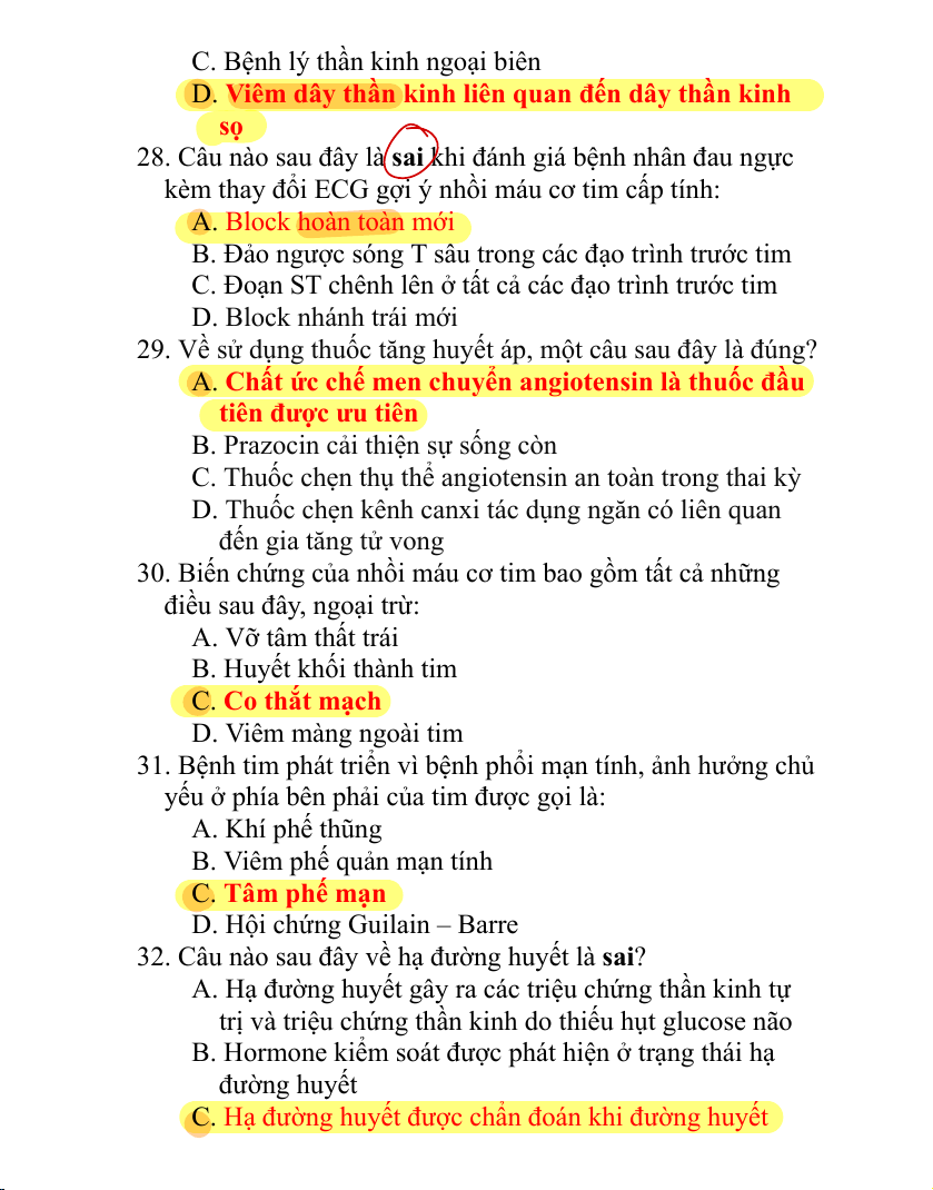 2. Một câu sau đây là sai ở bệnh nhân đã có nhồi máu cơ tim