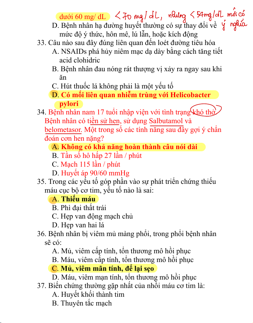 49. Bệnh nhân nam 33 tuổi có biểu hiện đau bụng trên và ói