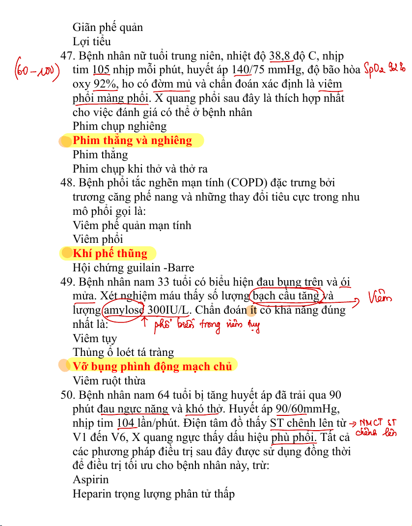 47. Bệnh nhân nữ tuổi trung niên, nhiệt độ 38,8 độ C, nhịp