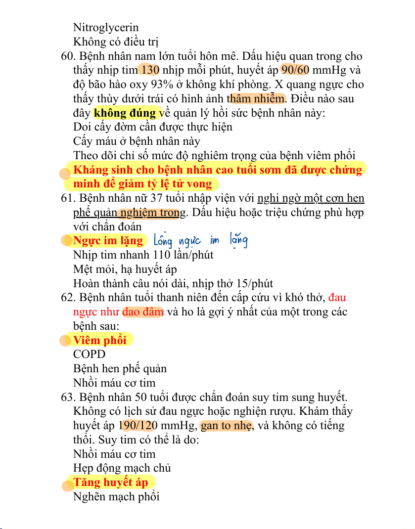 62. Bệnh nhân tuổi thanh niên đến cấp cứu vì khó thở, đau