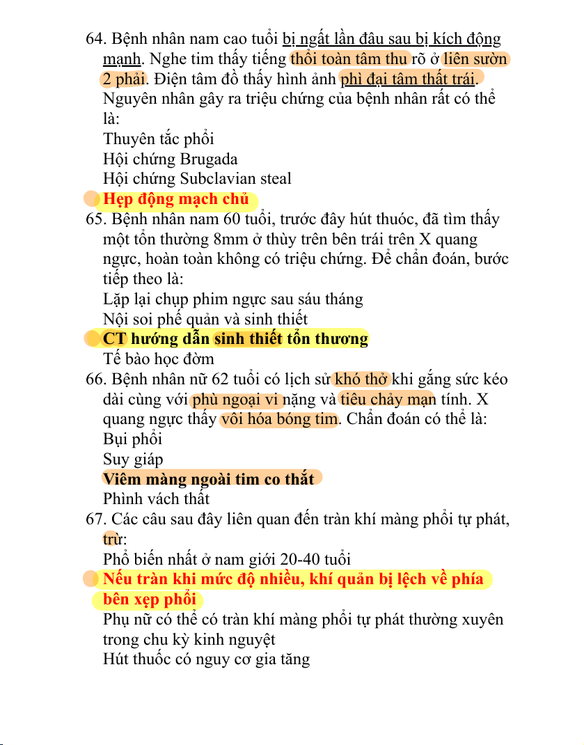 66. Bệnh nhân nữ 62 tuổi có lịch sử khó thở khi gắng sức kéo