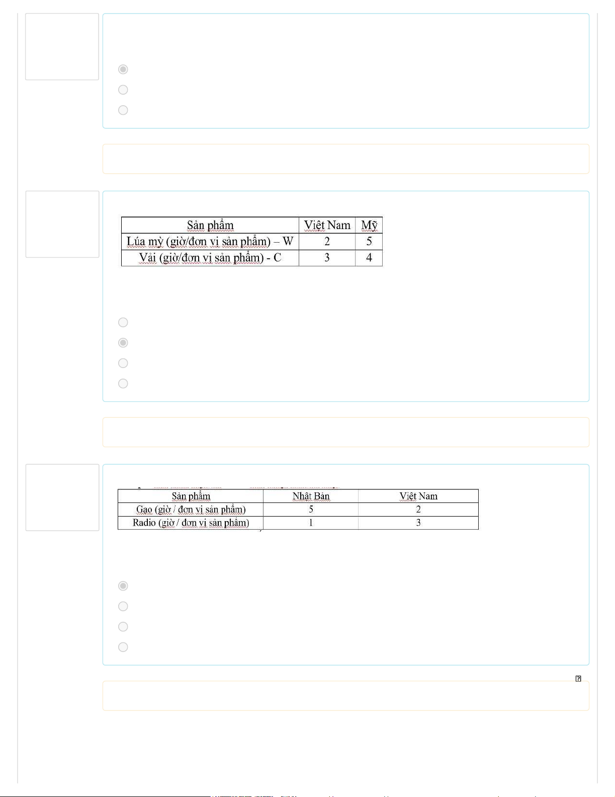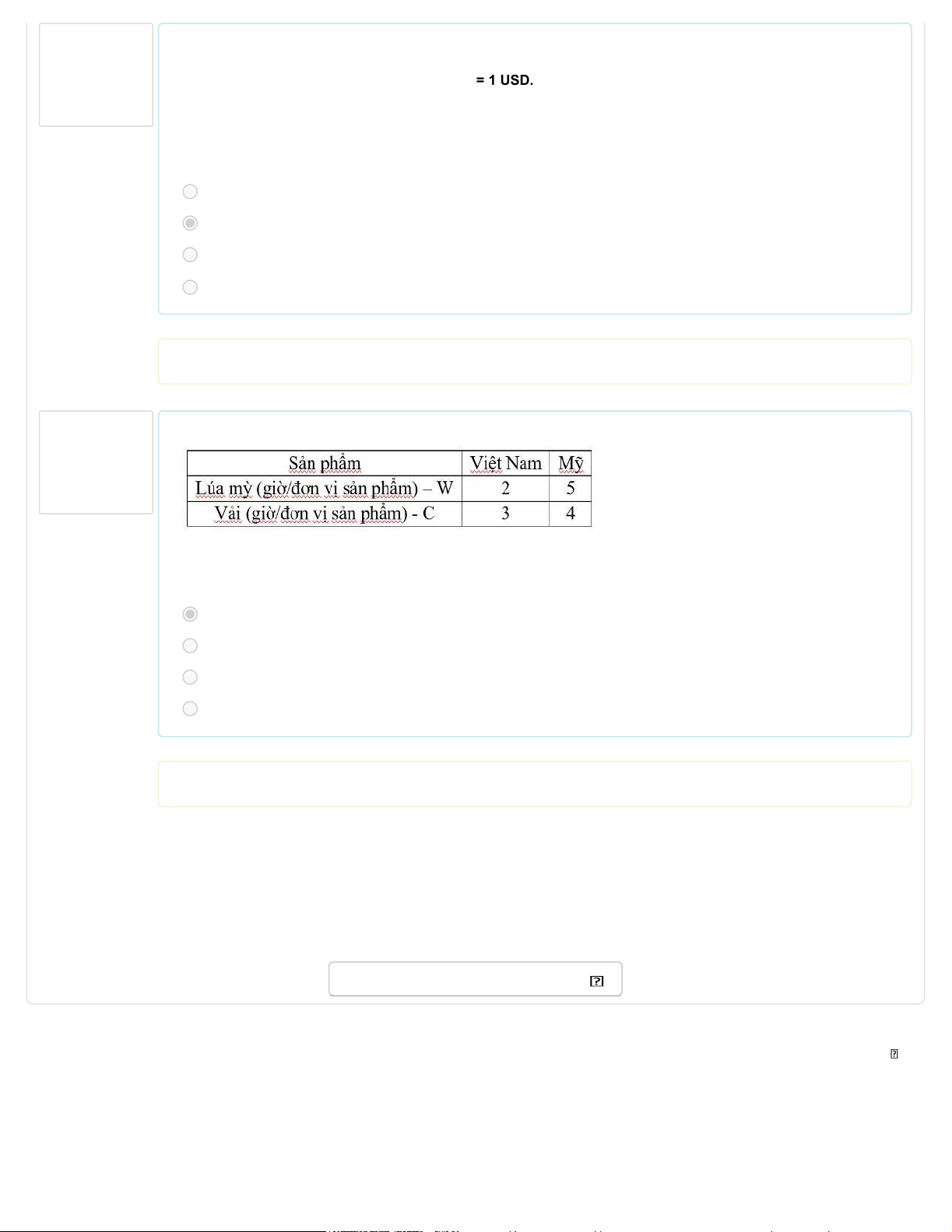 Cho chi phí lao ộng sản xuất lúa mỳ và vải của Việt Nam và Mỹ như sau:  Hoàn thành  Đạt iểm 1,00 trên  1,00